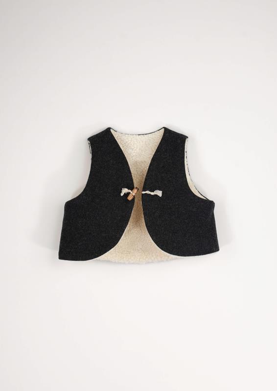 Short woollen waistcoat. Front fastening with cord. Exclusive top-quality wool manufactured in Spain.