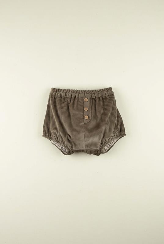 Culotte with placket and natural wood buttons. Elasticated waist. 100% organic cotton lining.