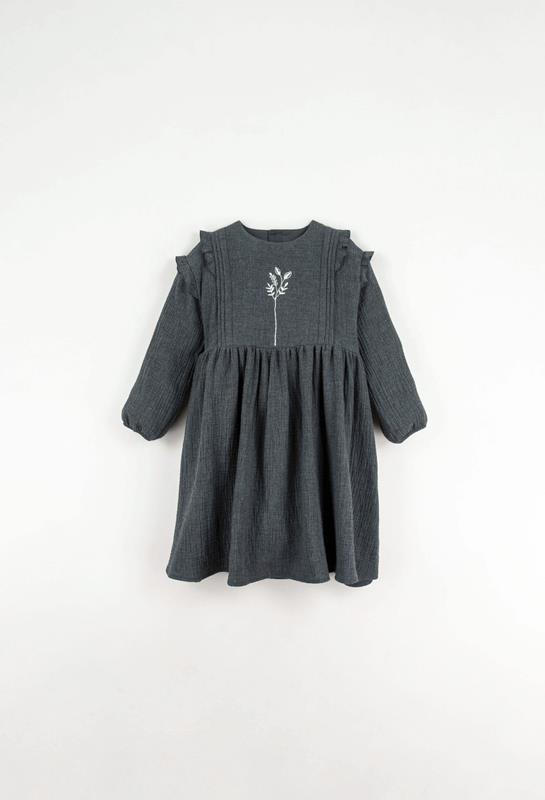 Ref. AW22.23 Mod.32.2 Dark grey embroidered dress with pintucks