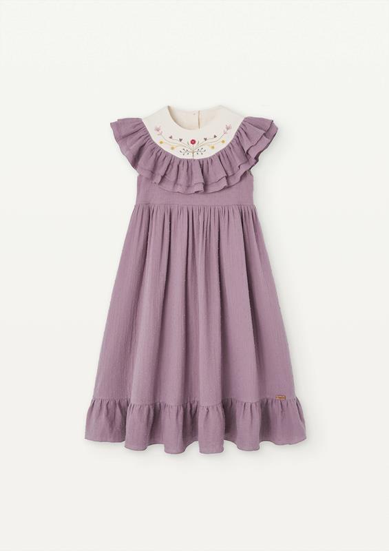 Ref. SS25 Mod 30.3 Mauve dress with embroidered yoke and frills