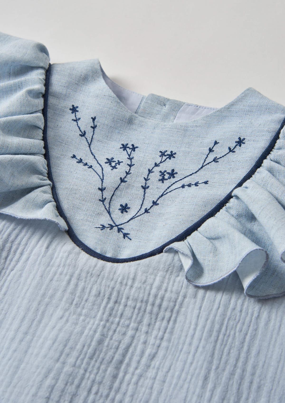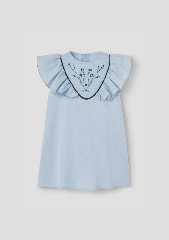 Ref. SS26 Mod.40.3 Blue short dress with embroidered yoke