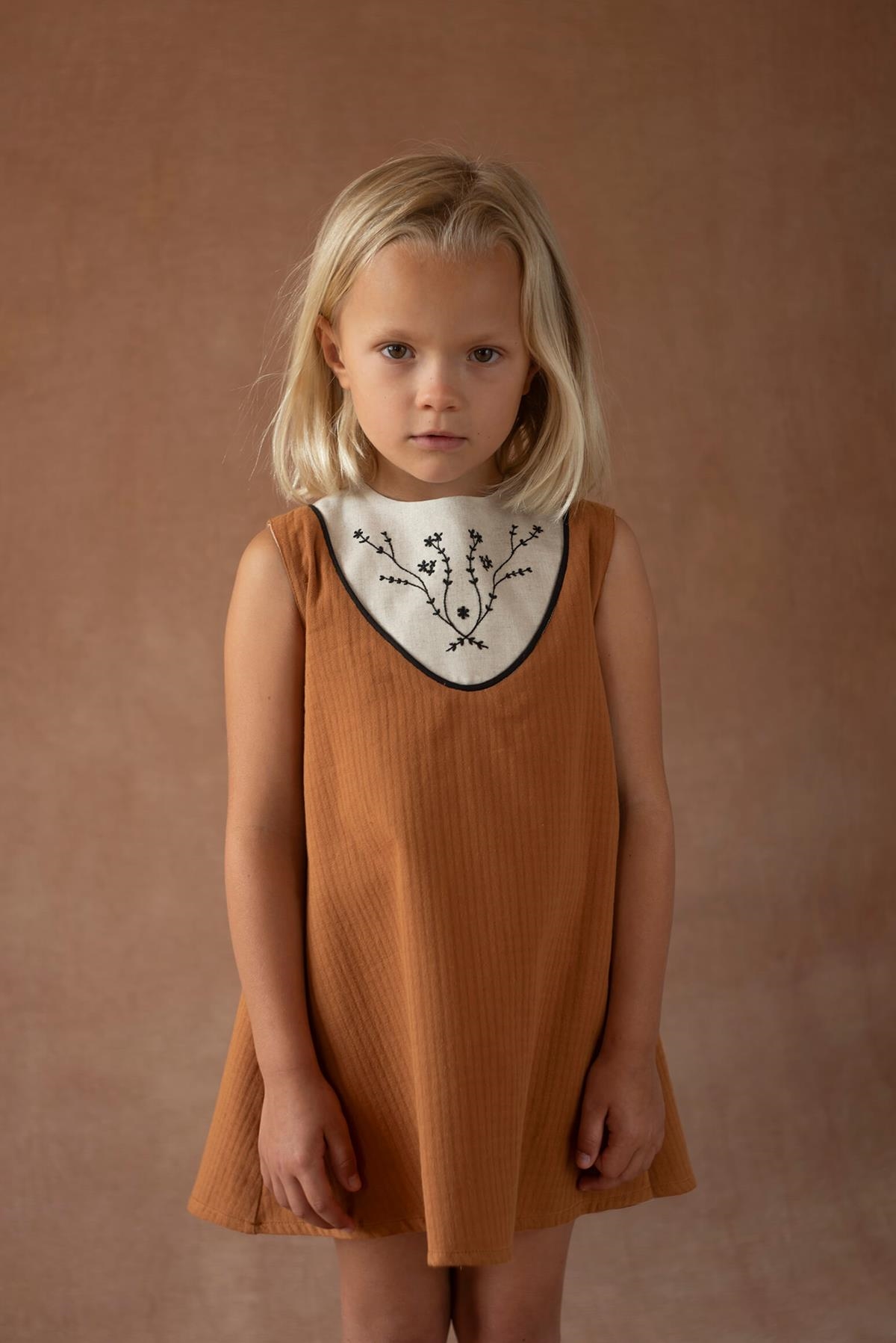 • Mod.40.4 Terracotta short dress with embroidered yoke