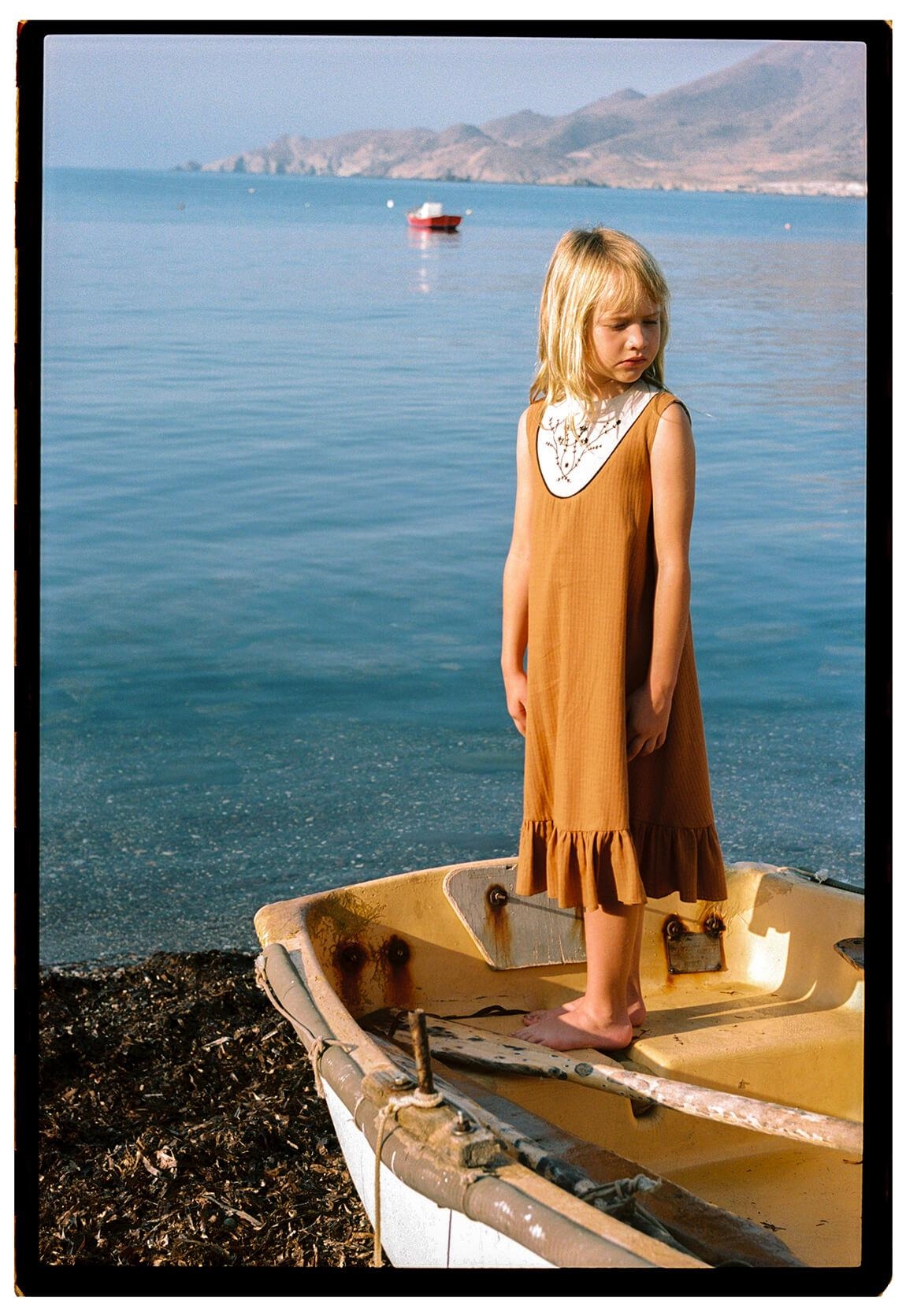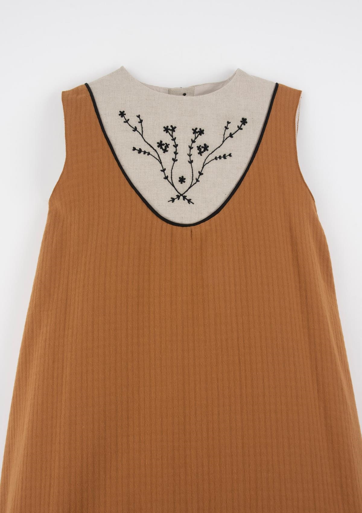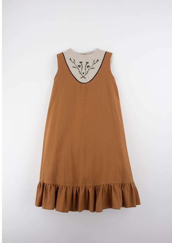 • Mod.40.8 Terracotta midi dress with embroidered yoke