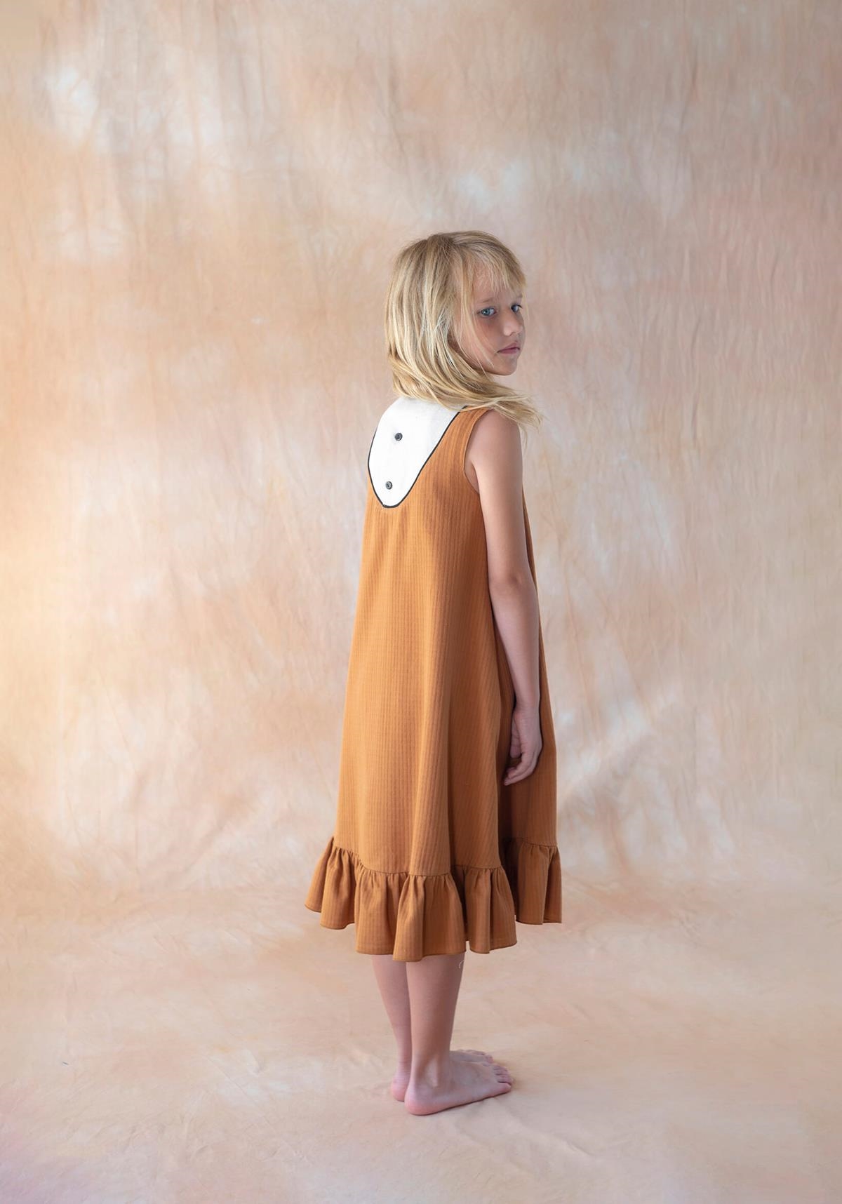 Ref. SS26 Mod.40.8 Terracotta midi dress with embroidered yoke