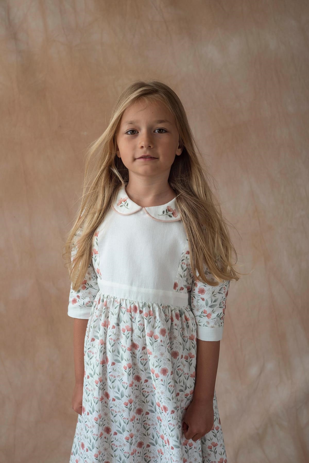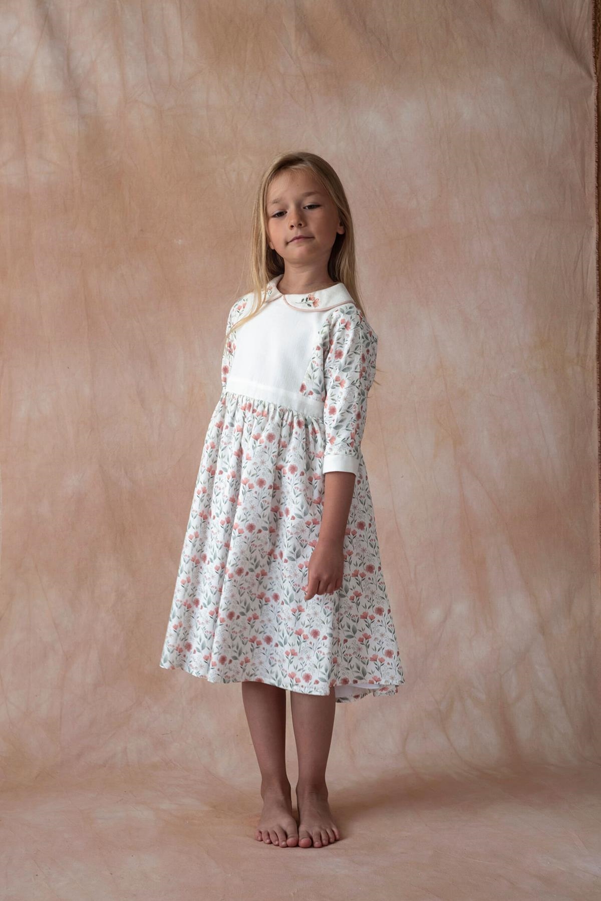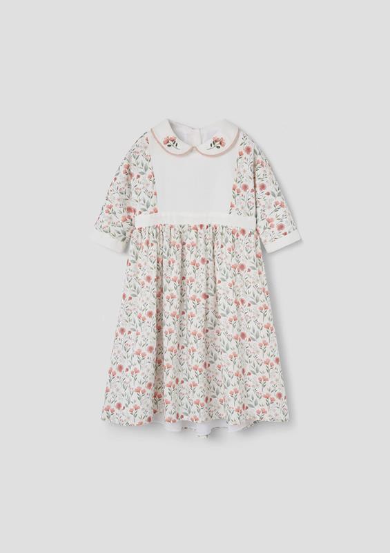 Ref. SS26 Mod.44.3 Poppy pattern dress with yoke and embroidered baby collar