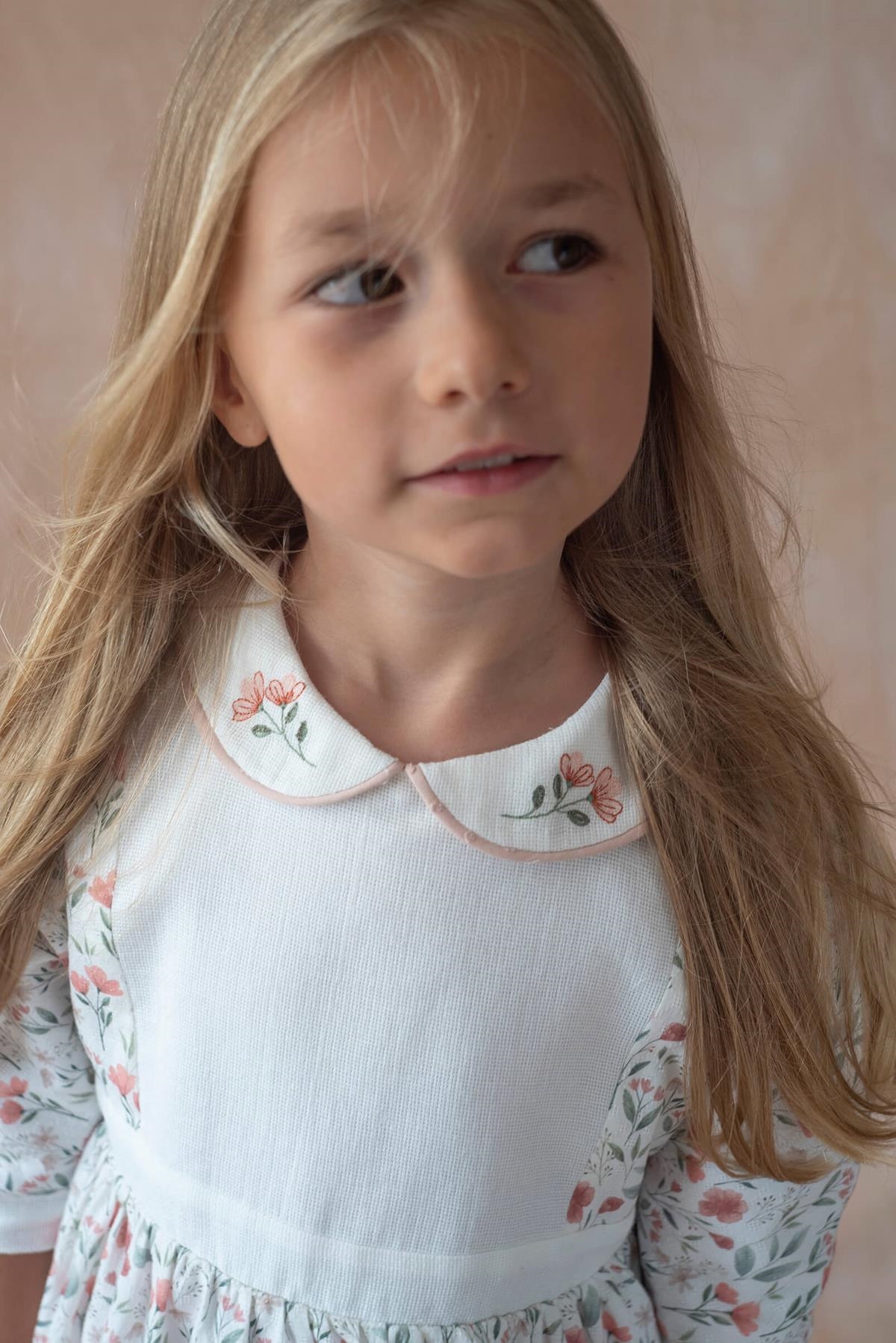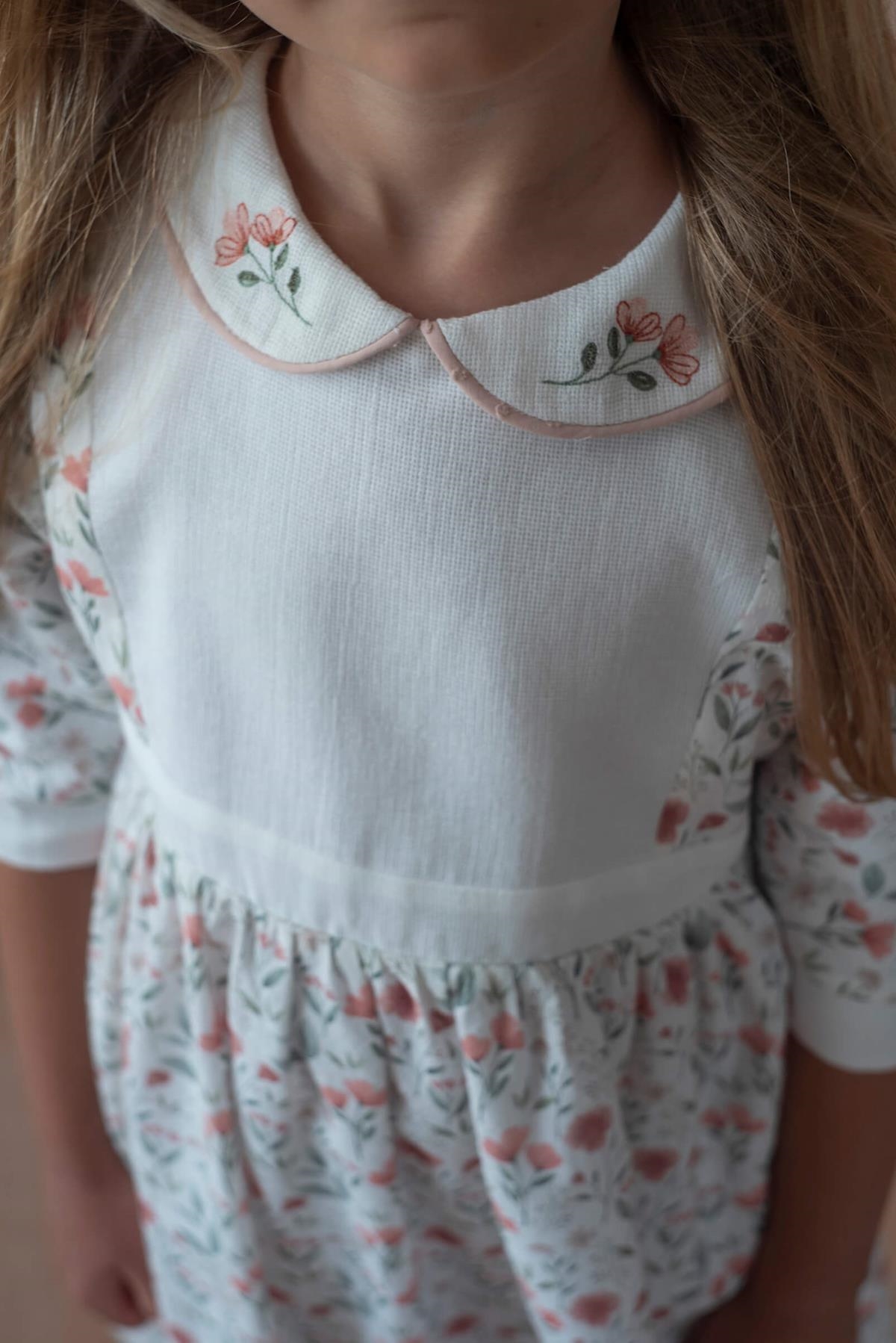 • Mod.44.3 Poppy pattern dress with yoke and embroidered baby collar