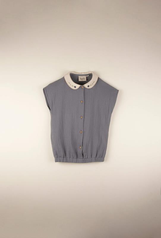 1 Ref. SS22 Mod.17.3 Greyish-blue organic blouse with embroidered collar Ver todos los artículos reversibles