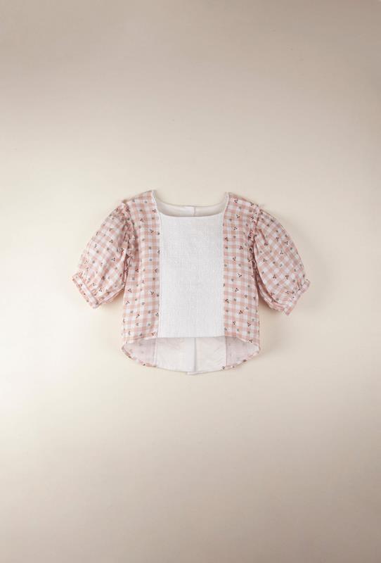 • Mod.18.3 Gingham and floral organic blouse with puffed sleeve