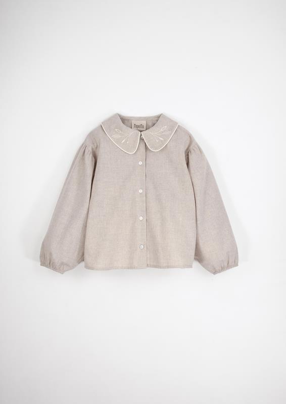 Ref. AW24.25 Mod.15.1 Sand blouse with embroidered maxi collar