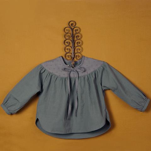 Camisa tipo pintor en popelin 100% algodón y canesú de plumeti con lazada delantera y apertura trasera.