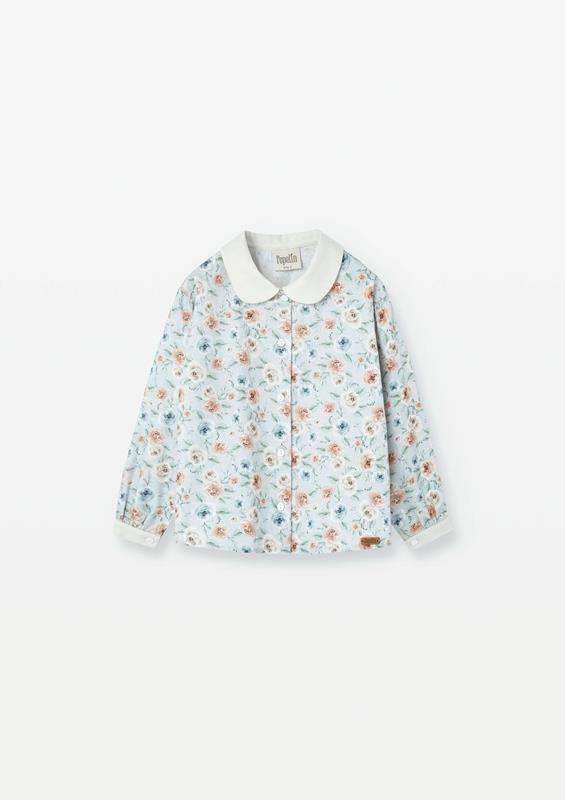 Ref. AW2526 Mod.26.6 Blue flower print shirt with baby collar and puffed sleeves