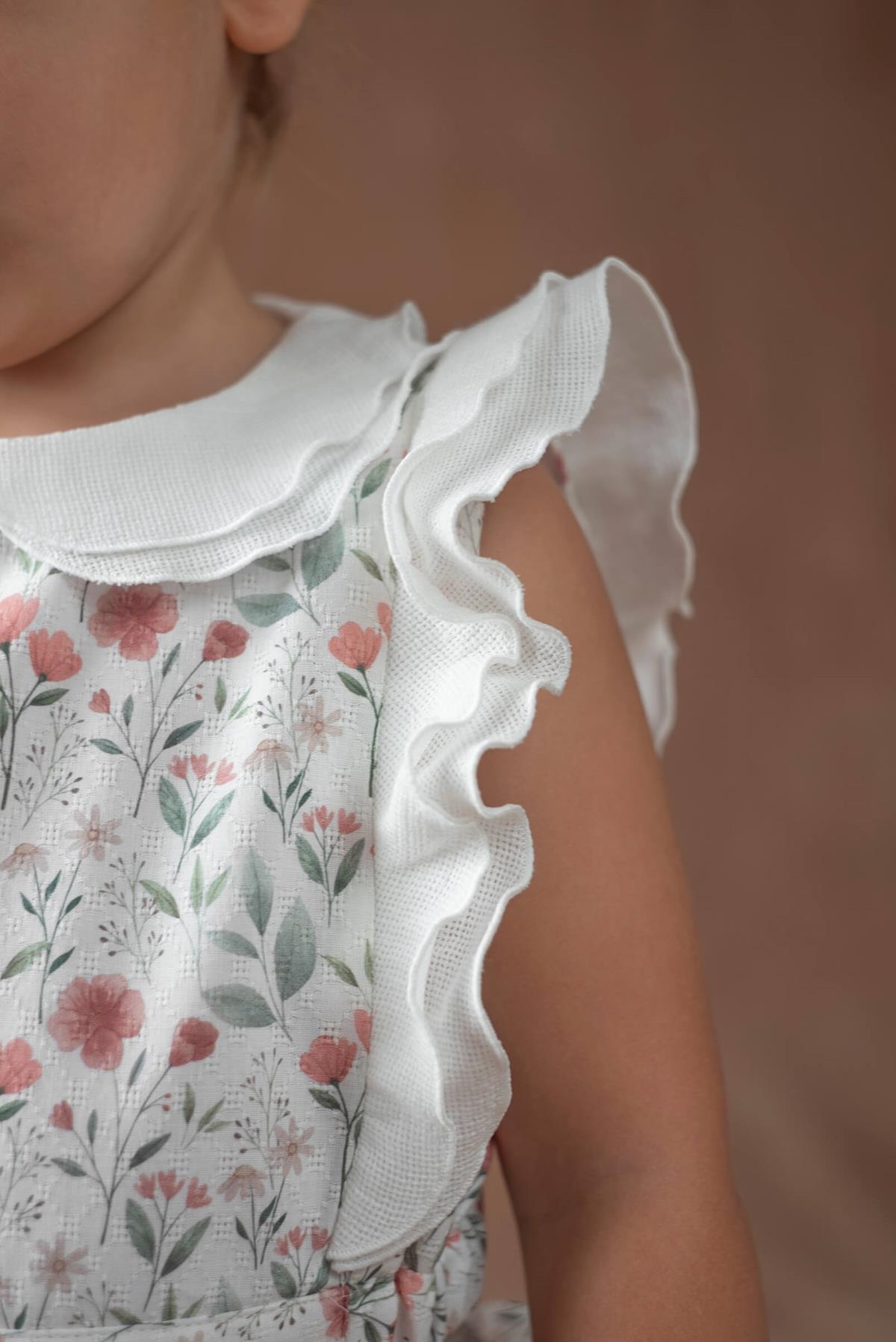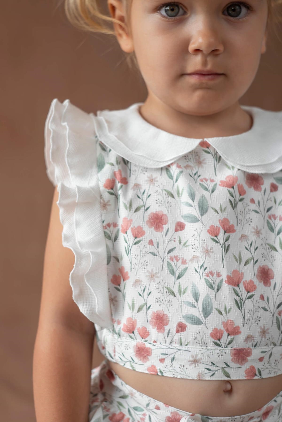 Ref. SS26 Mod.13.3 Poppy pattern short top with double baby collar