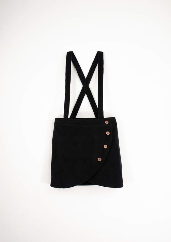 • Mod.25.5 Black corduroy crossover short skirt with straps
