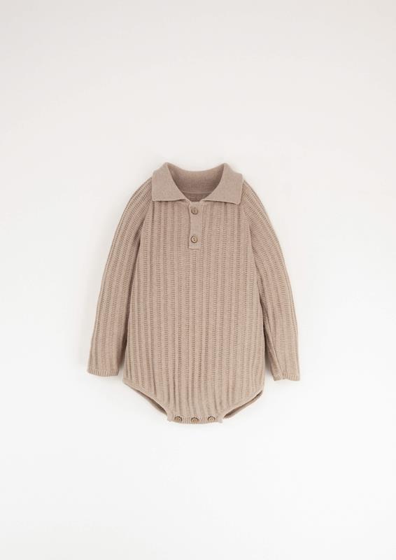Ref. AW23.24 Mod.10.2 Beige knitted romper suit with shirt-style collar