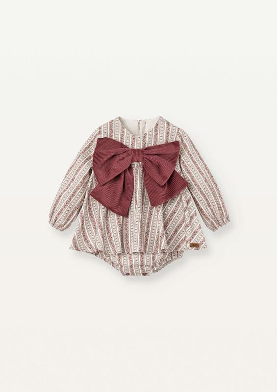 Ref. AW2526 Mod.4.3 Burgundy flower print romper suit with bow
