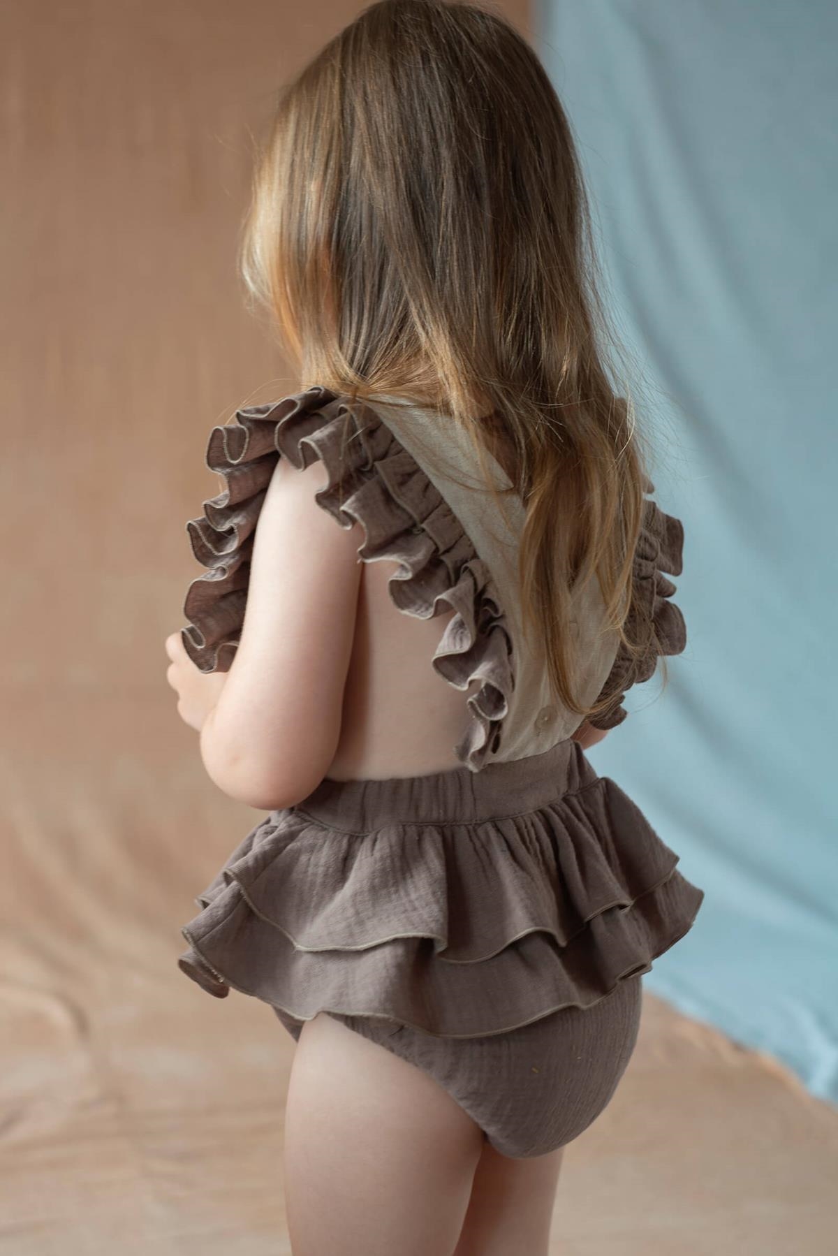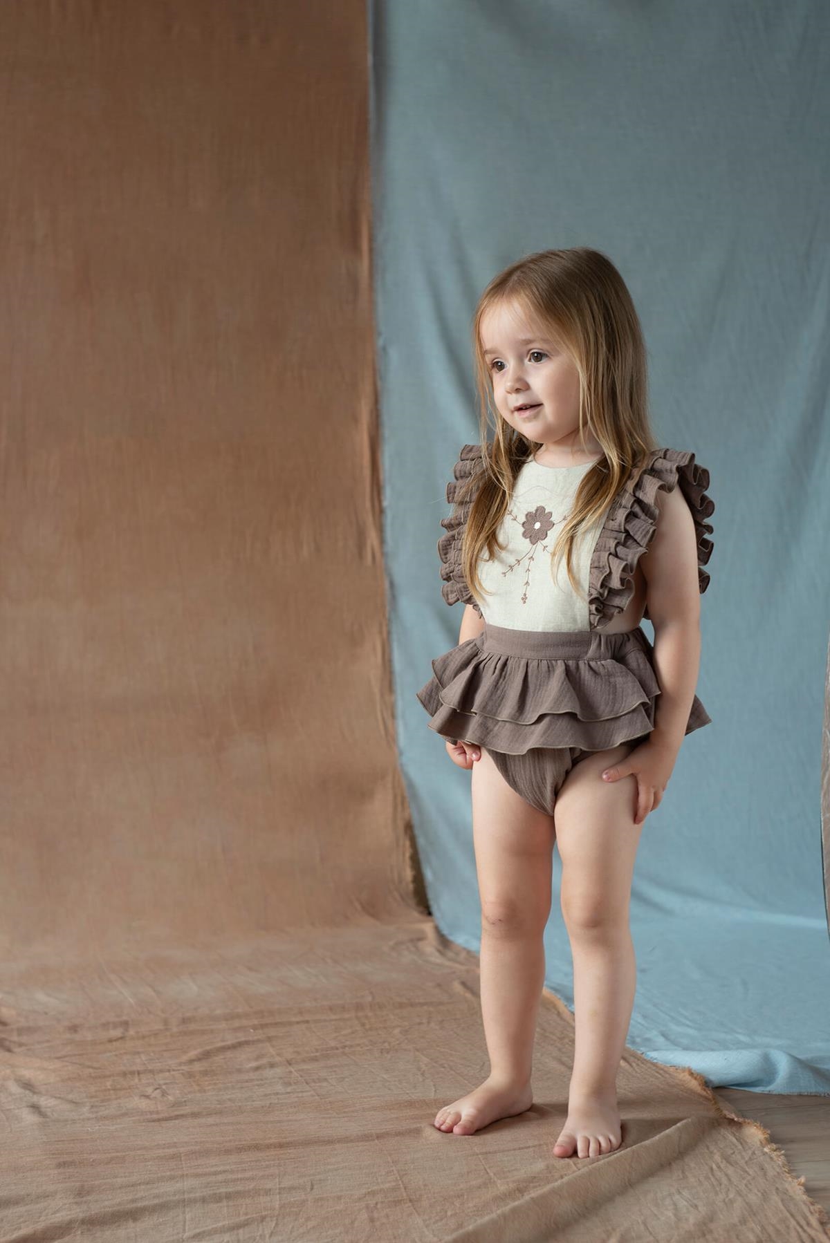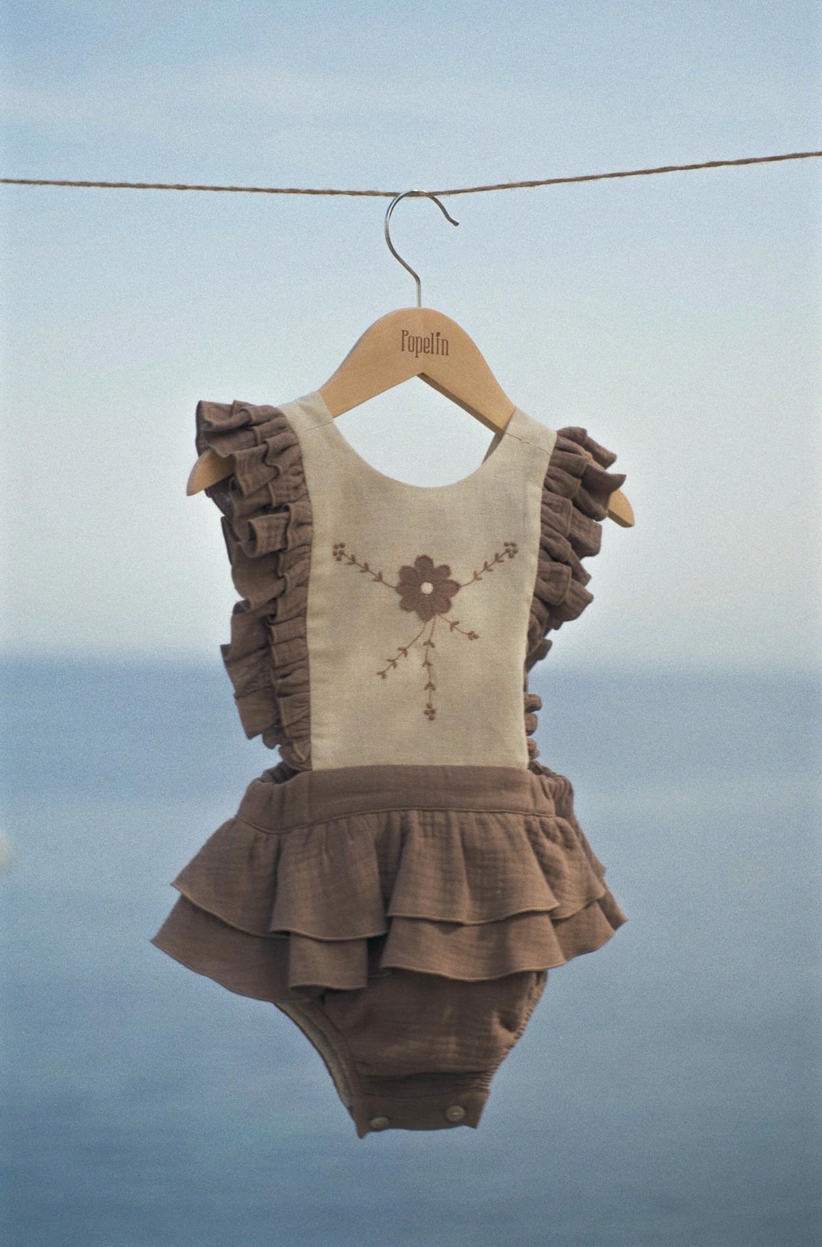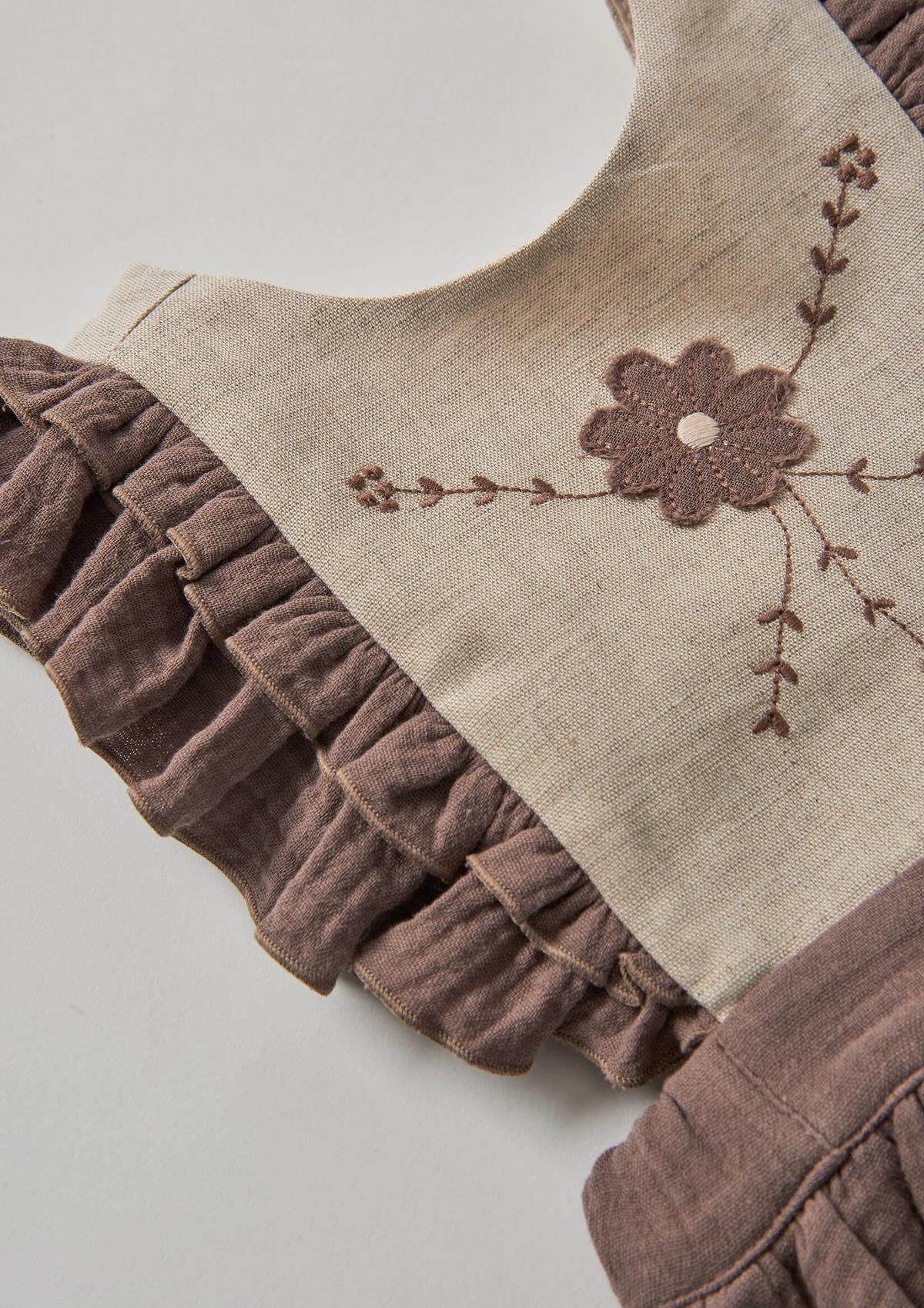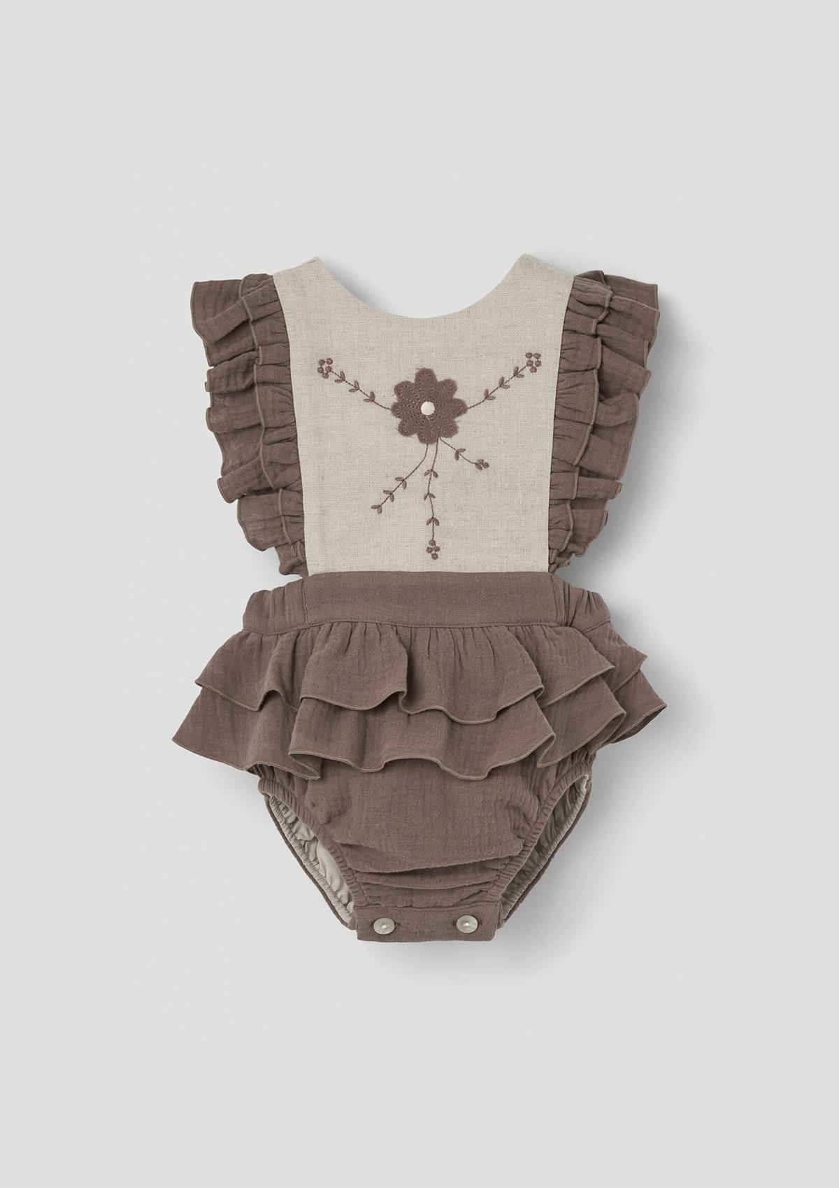 Ref. SS26 Mod.3.4 Brown romper suit with embroidered bib