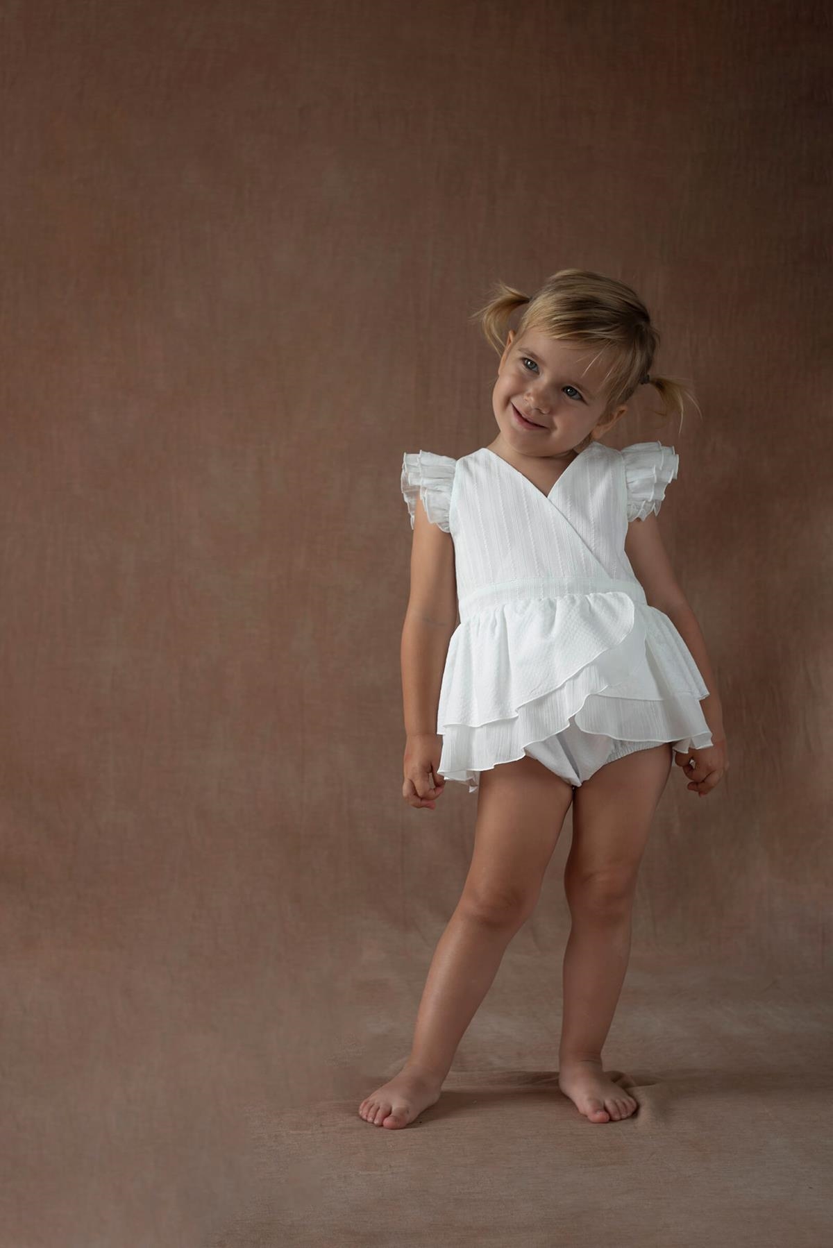Ref. SS26 Mod.5.1 White romper suit with crossover front