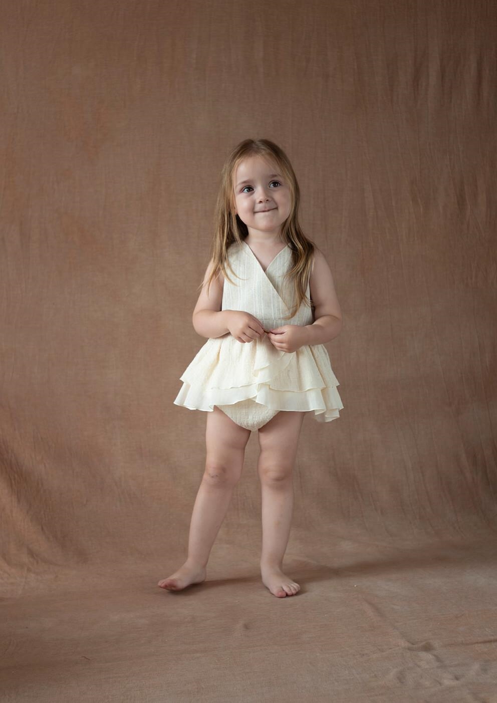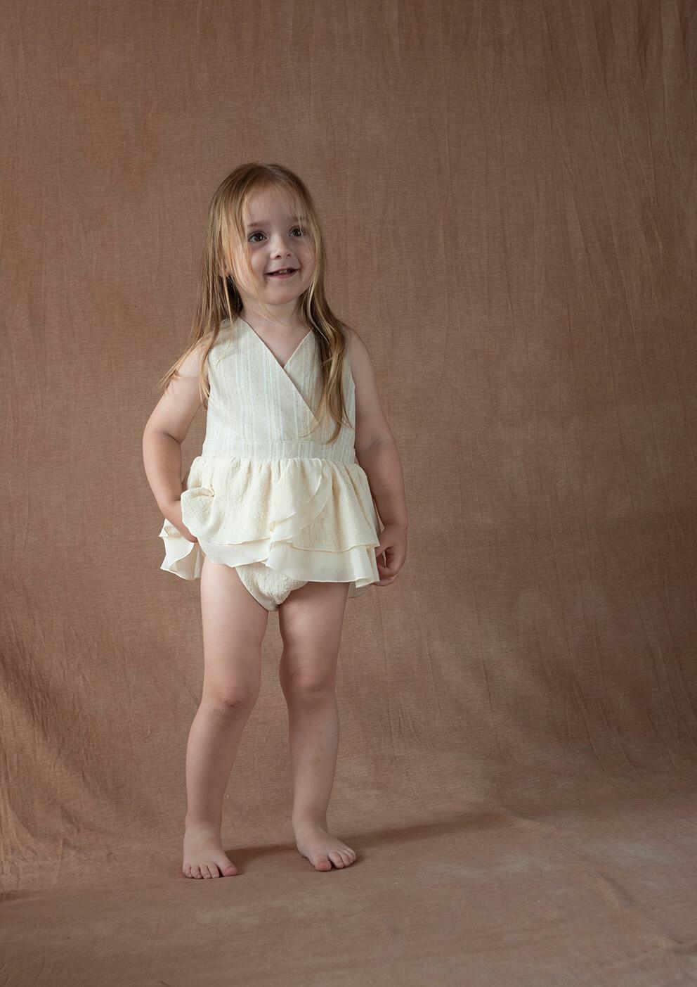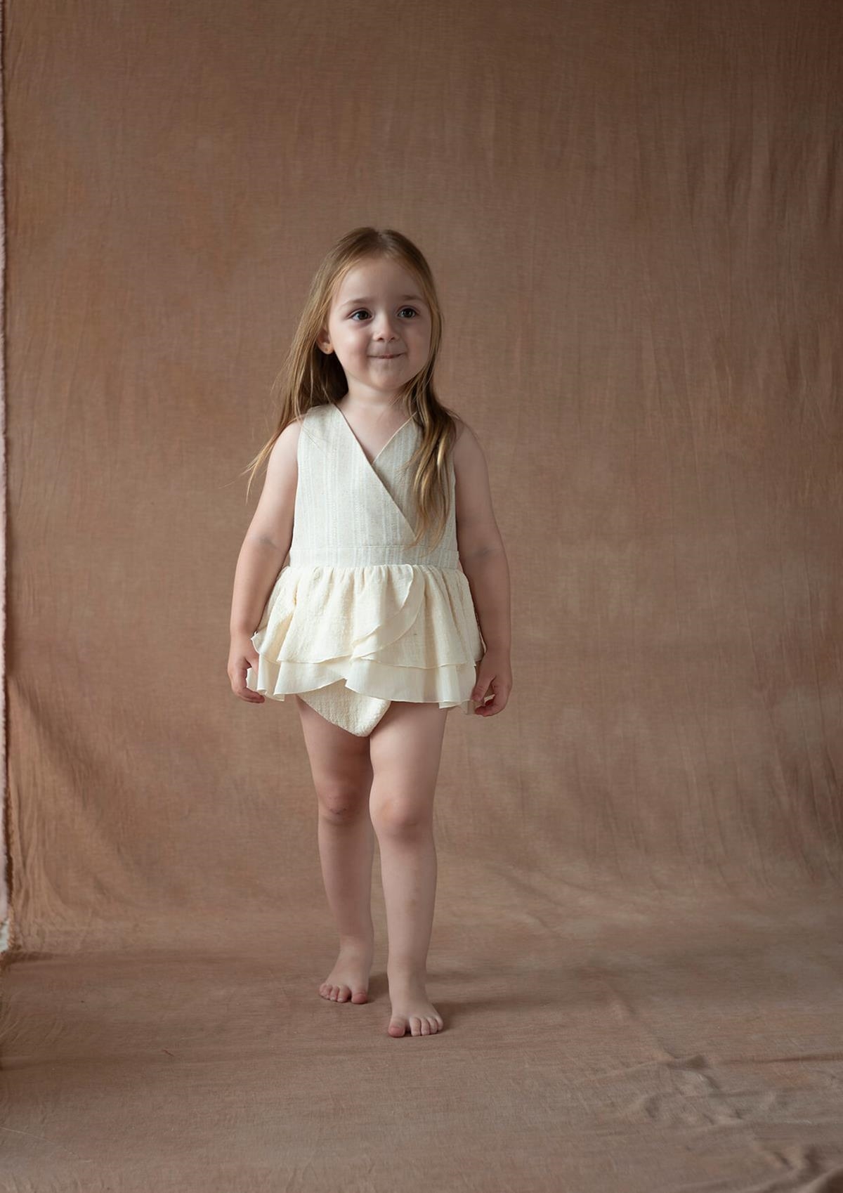 Ref. SS26 Mod.5.2 Gold lurex romper suit with crossover front