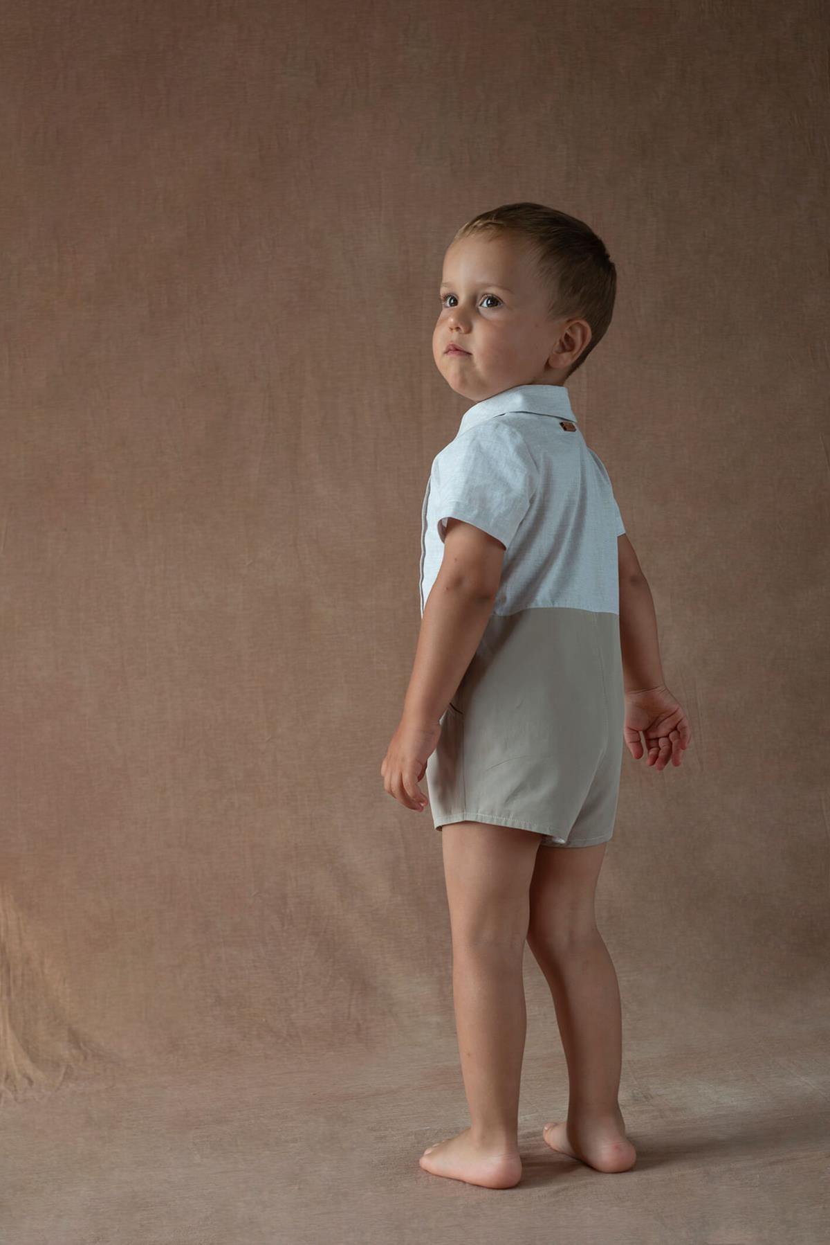 Ref. SS26 Mod.8.3 Taupe two-tone jumpsuit with shirt collar