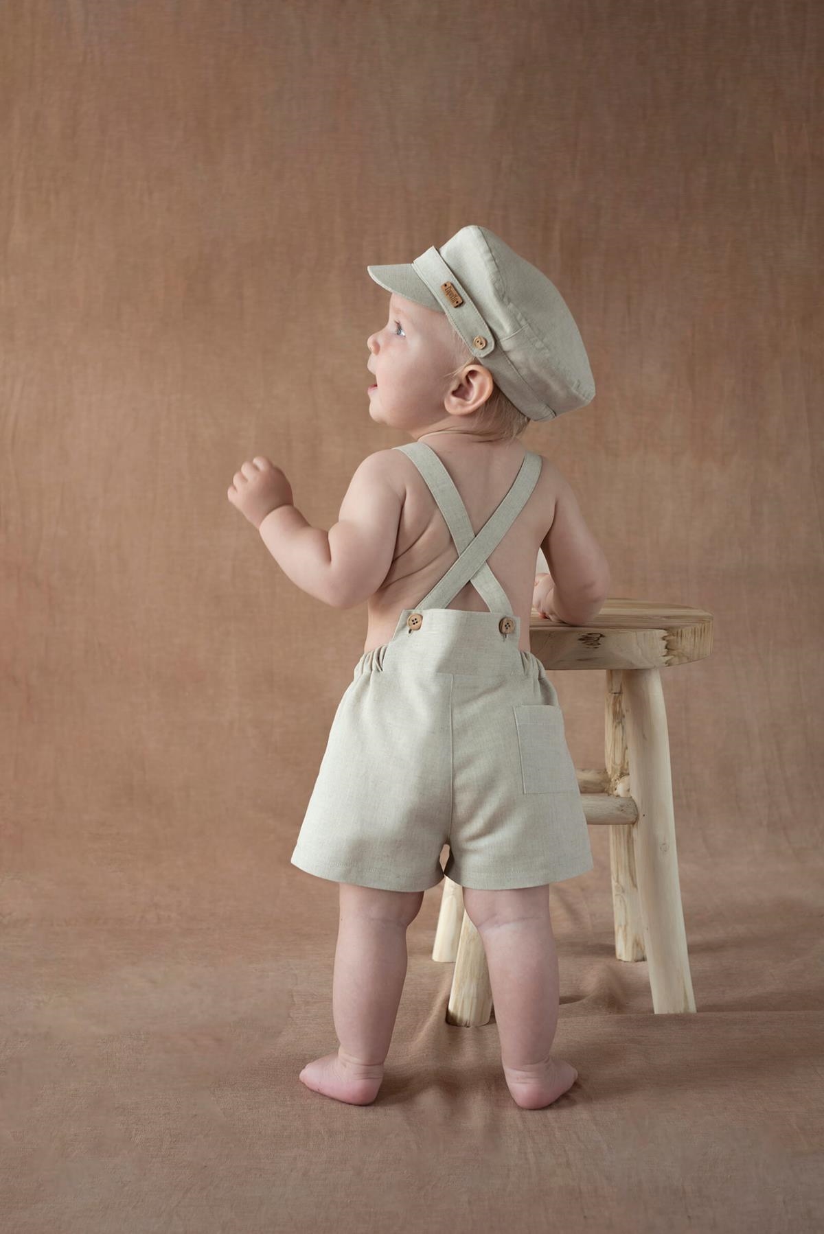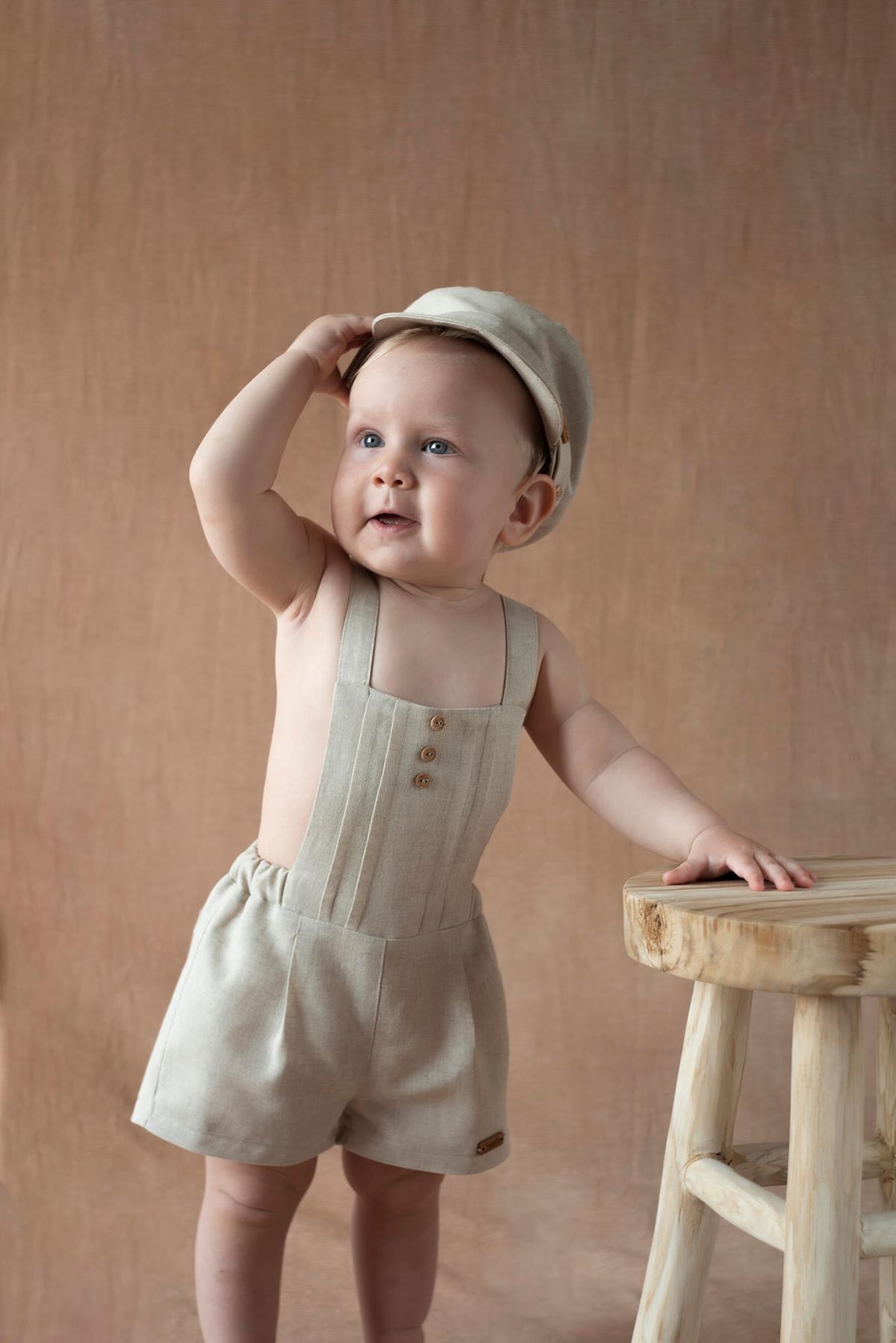 Ref. SS26 Mod.10.1 Sand linen dungarees with pleat