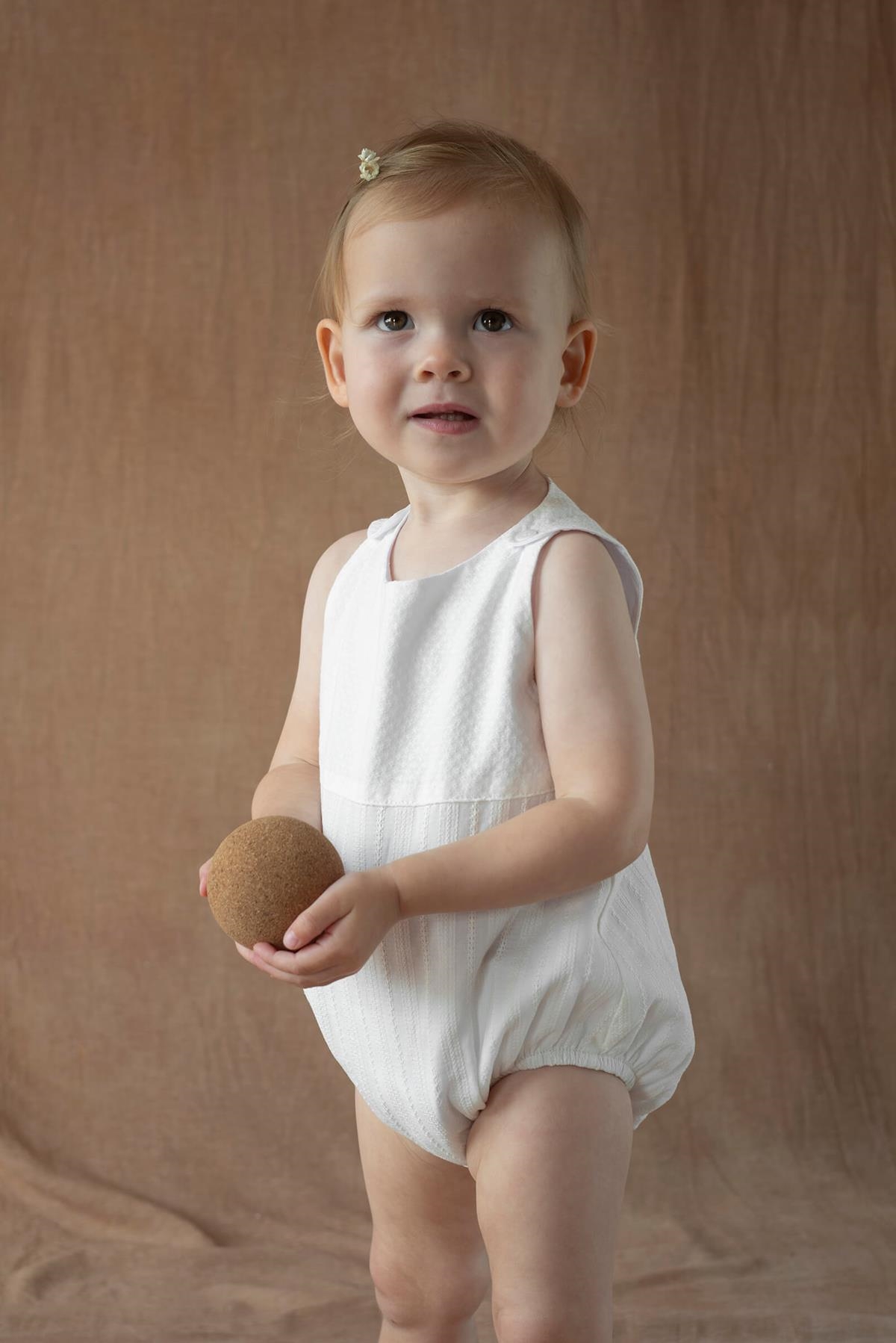 Ref. SS26 Mod.50.1 White contrasting baby romper suit