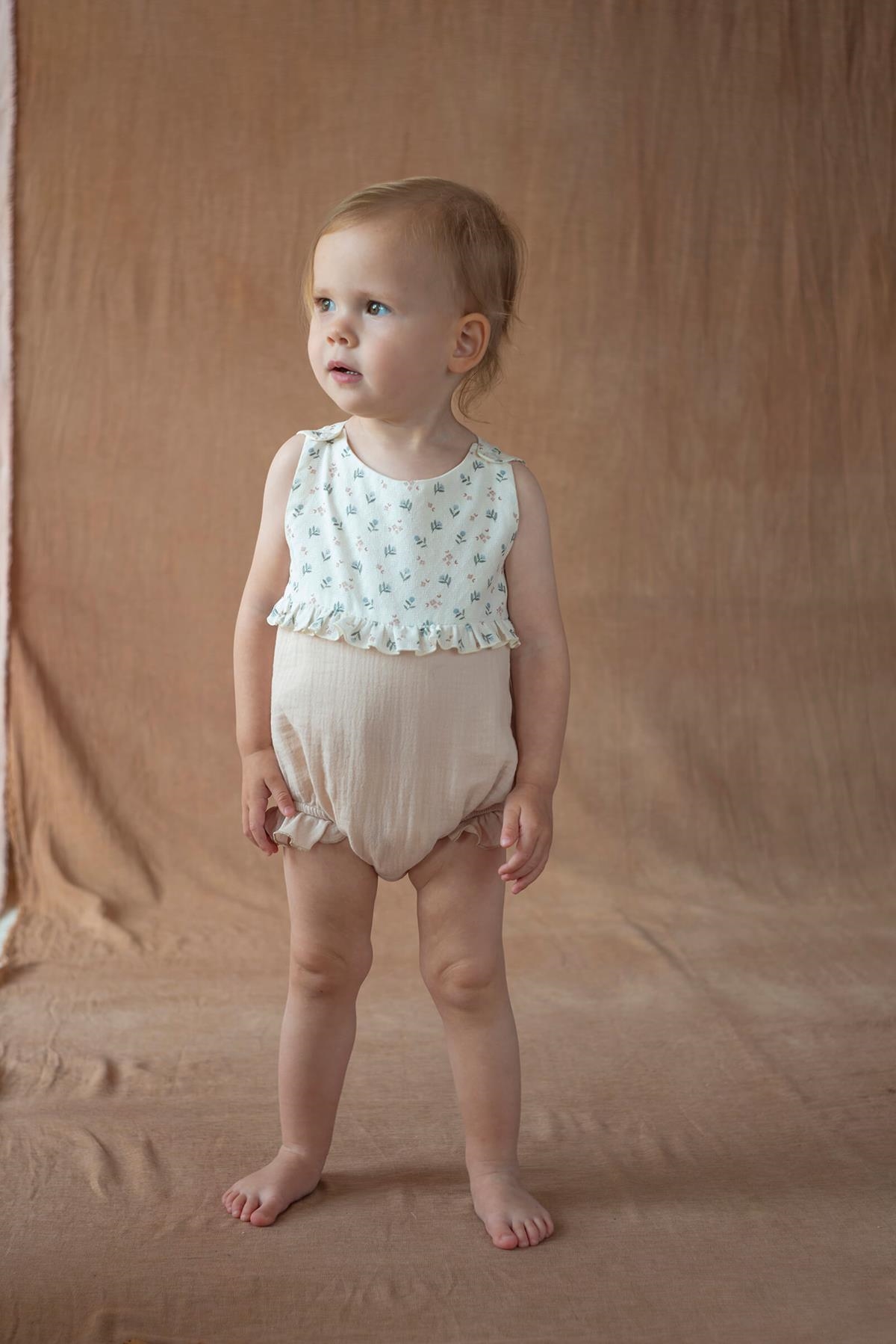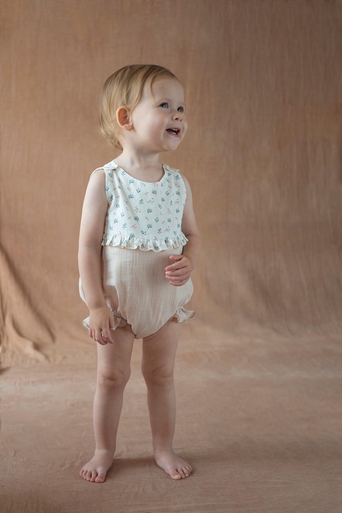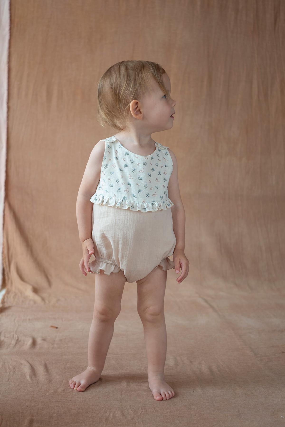 Ref. SS26 Mod.50.3 Floral contrasting baby romper suit