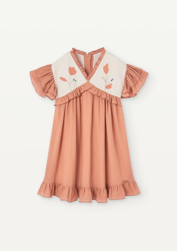 Ref. SS25 Mod 35.2 Coral dress with embroidered yoke and appliqué