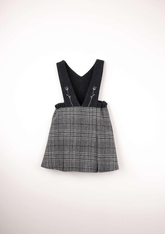 Ref. AW2526 Mod.43.1 Grey plaid woollen short dress with bib and embroidered straps