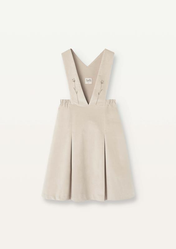 Ref. AW2526 Mod.43.6 Beige velvet dress with bib and embroidered straps