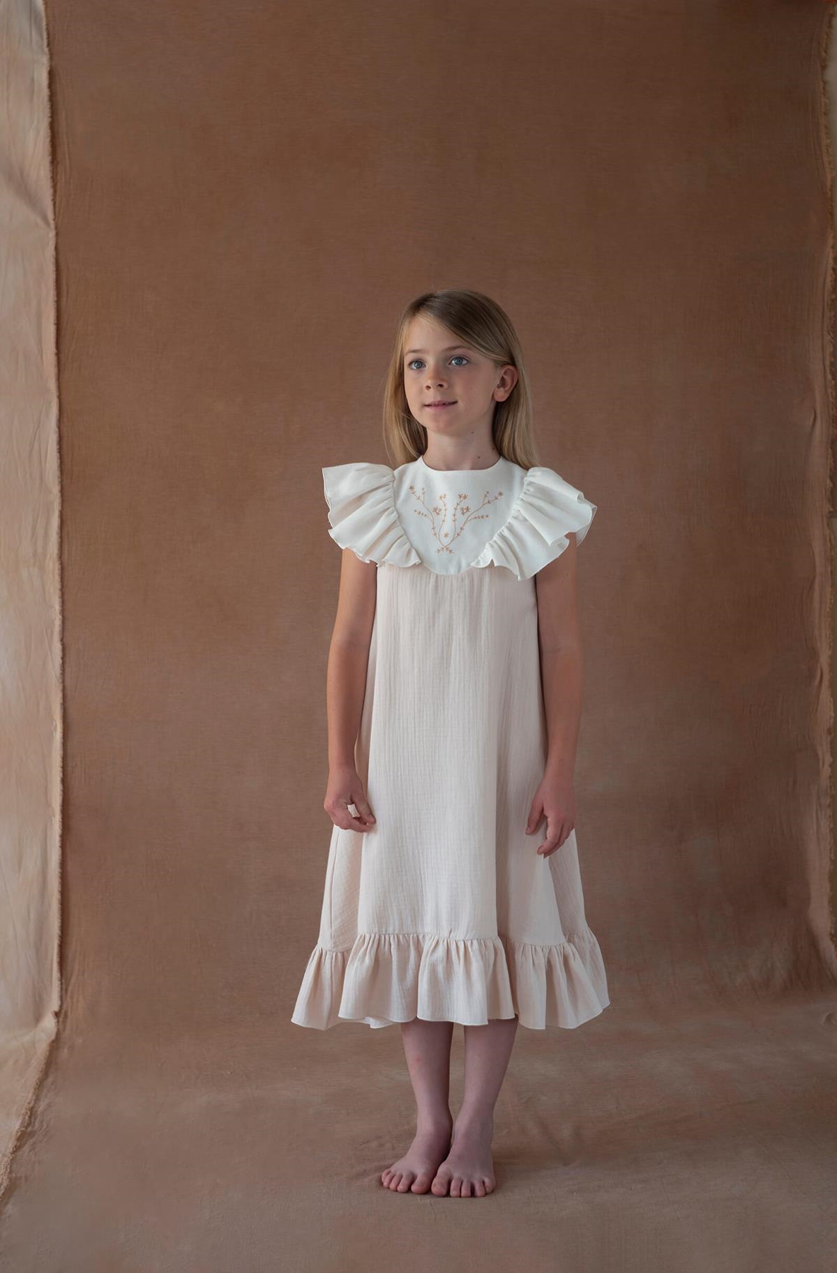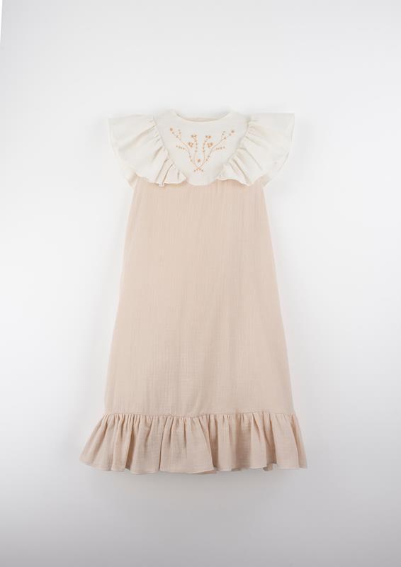 Ref. SS26 Mod.40.6 Dusty pink midi dress with embroidered yoke