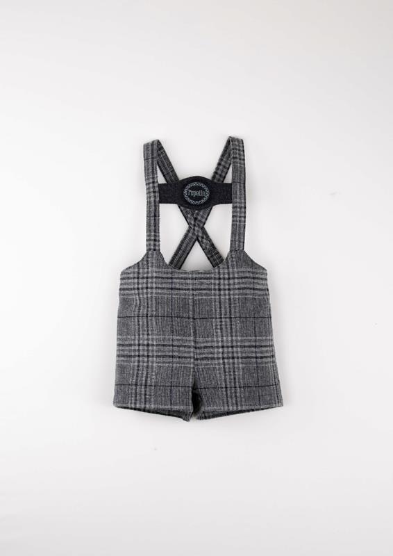 Ref. AW2526 Mod.9.5 Grey plaid woollen short dungarees with embroidery appliqué