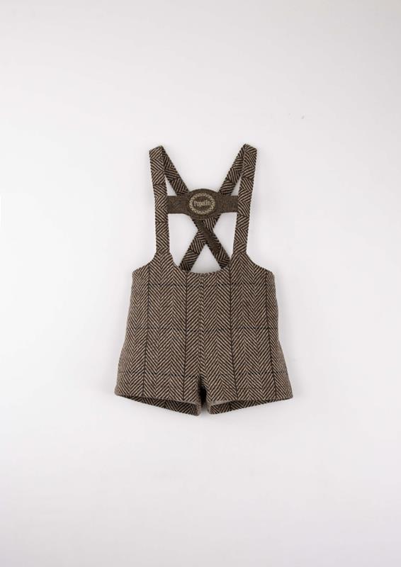• Mod.9.6 Brown herringbone woollen short dungarees with embroidery appliqué