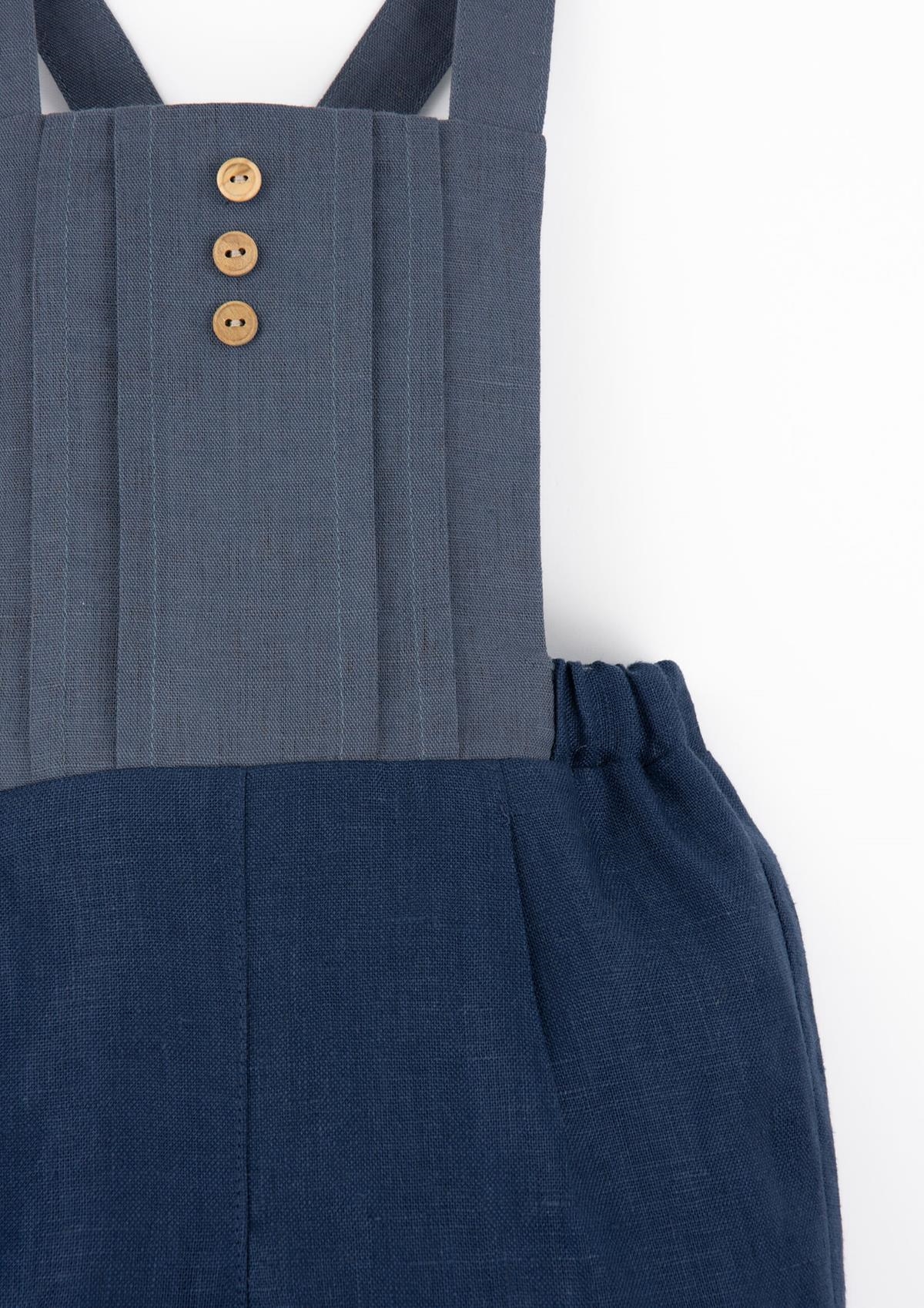 • Mod.10.4 Navy blue linen dungarees with pleat
