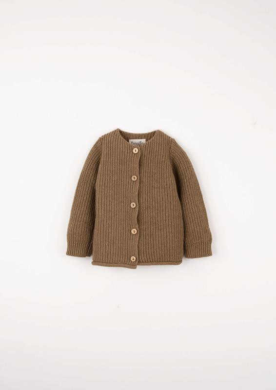 Long-sleeved brioche stitch jacket. Wooden button front opening. Exclusive design knitted in Spain with top-quality wool.