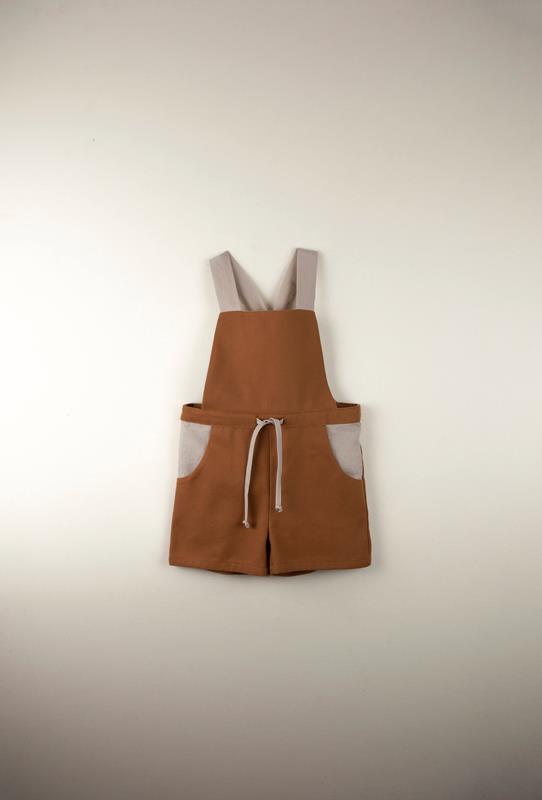 Dungarees with adjustable straps. Drawstring adjustable waist and pockets. 100% organic cotton lining.