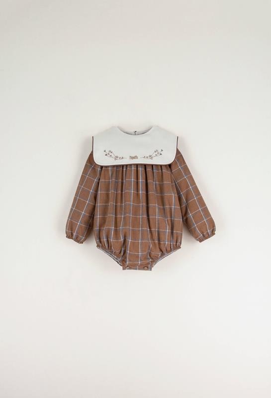 Ref. AW22.23 Mod.2.3 Terracotta plaid embroidered romper suit with yoke