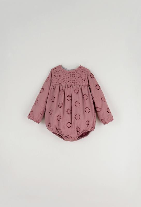 Ref. AW22.23 Mod.4.3 Pink organic fabric romper suit with Swiss embroidery
