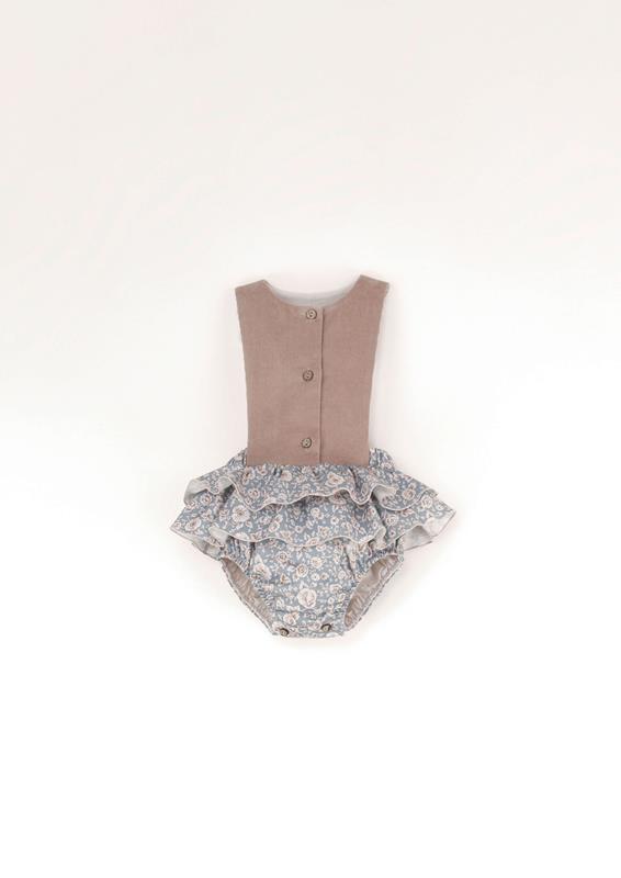 • Mod.3.1 Blue floral print romper suit with bib and frill