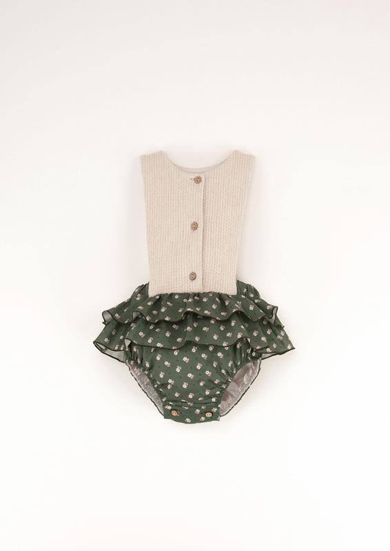Ref. AW23.24 Mod.3.3 Green floral print romper suit with bib and frill