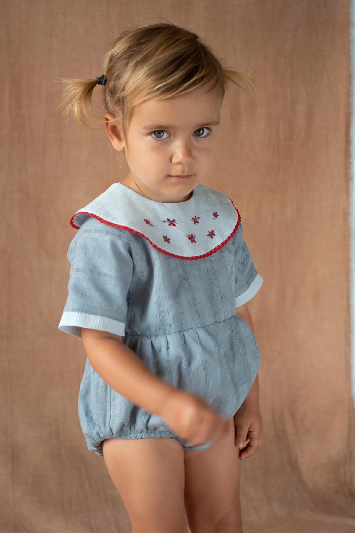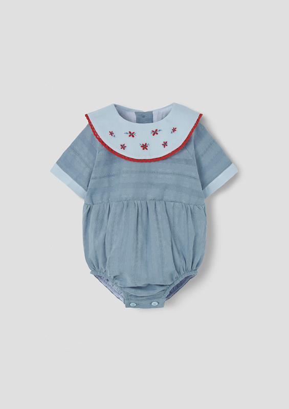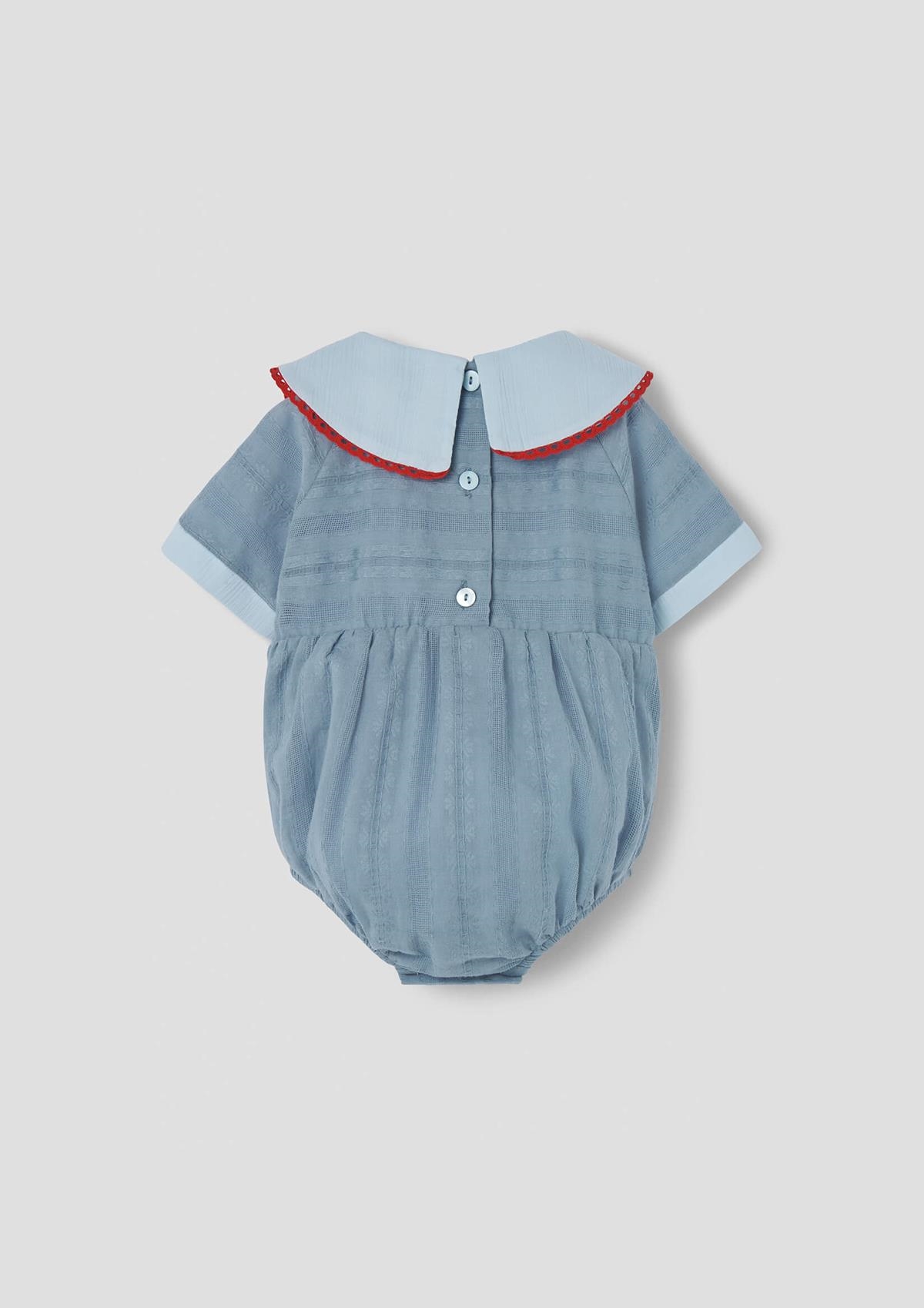 Ref. SS26 Mod.2.3 Blue romper suit with embroidered bib collar