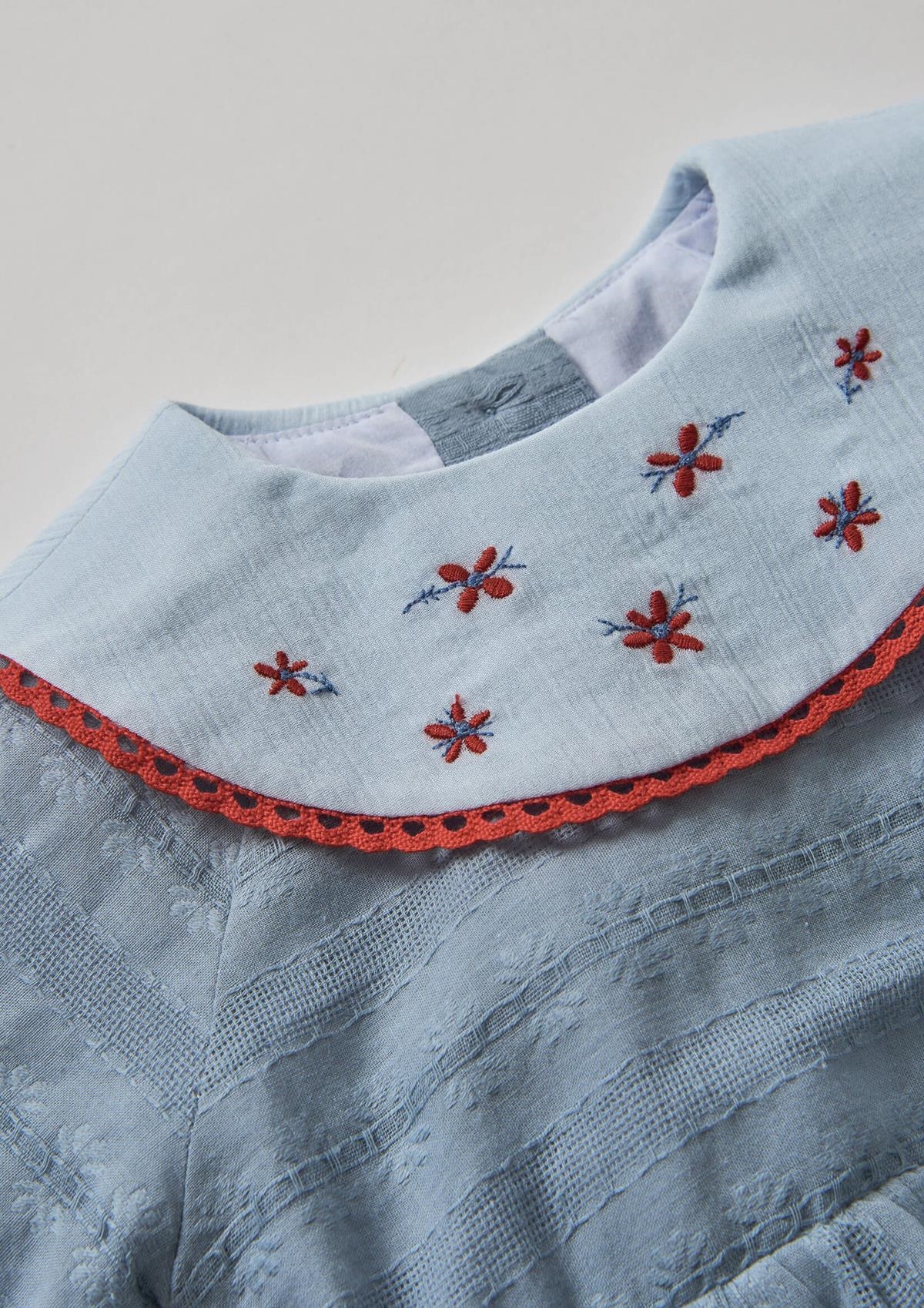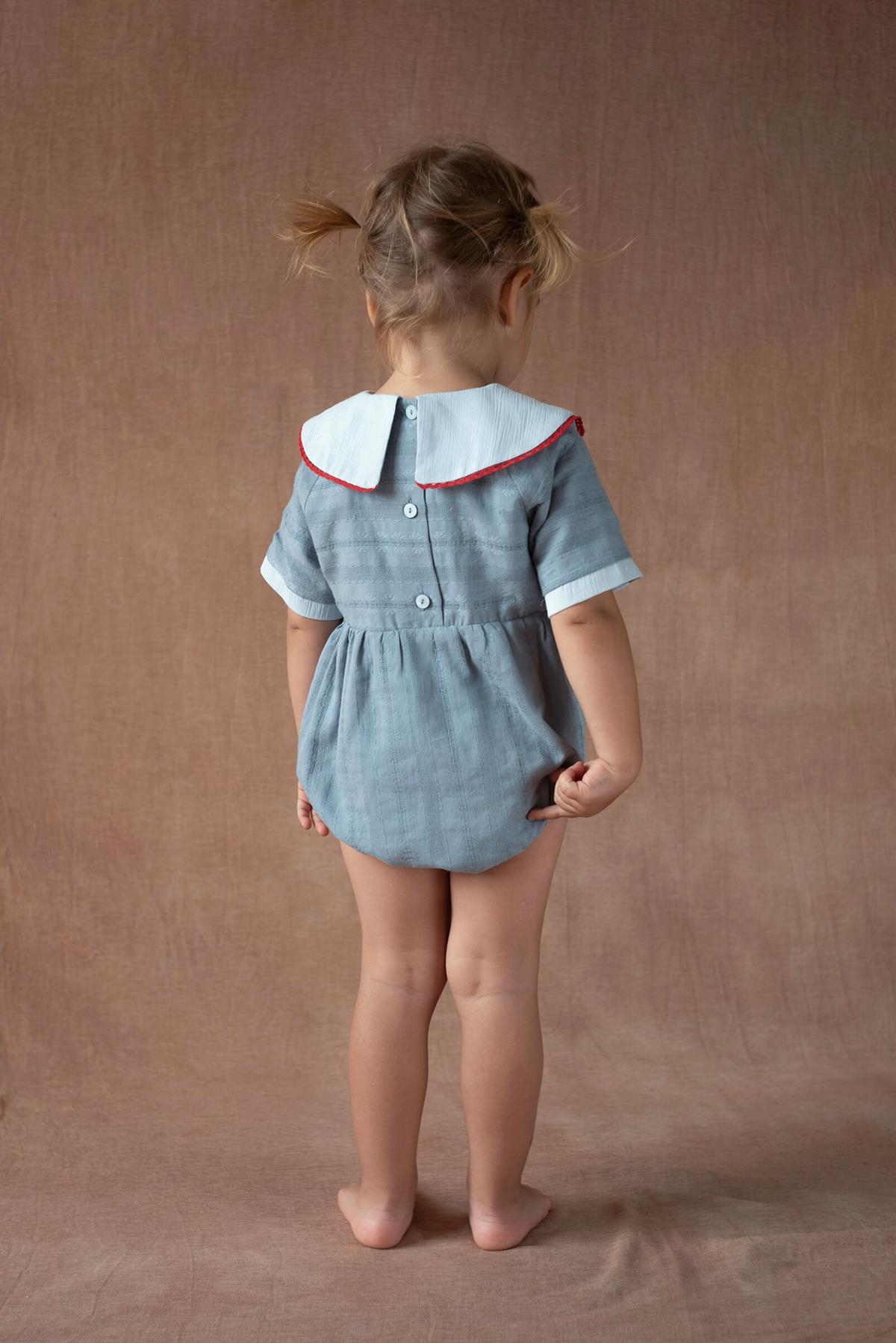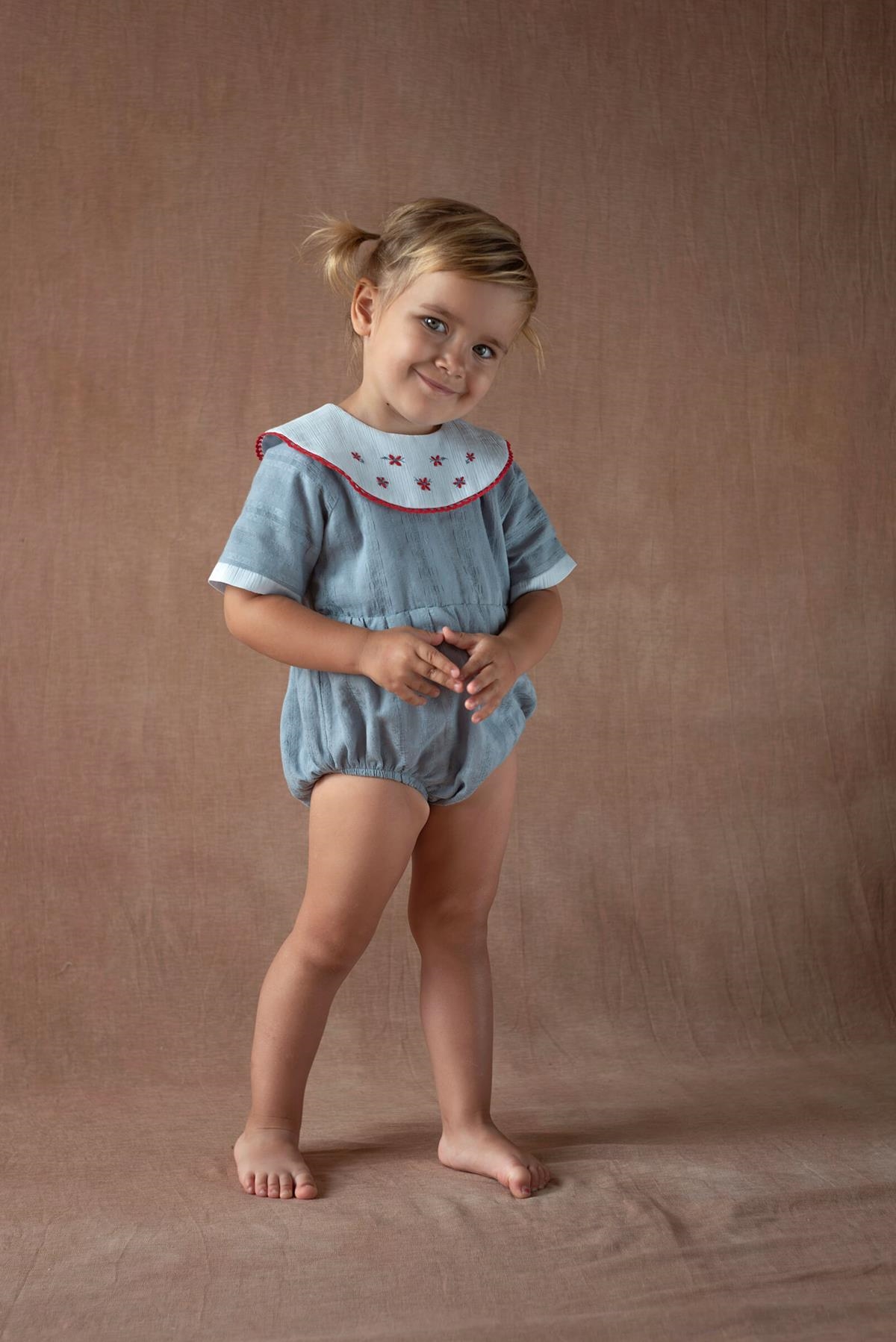 Ref. SS26 Mod.2.3 Blue romper suit with embroidered bib collar