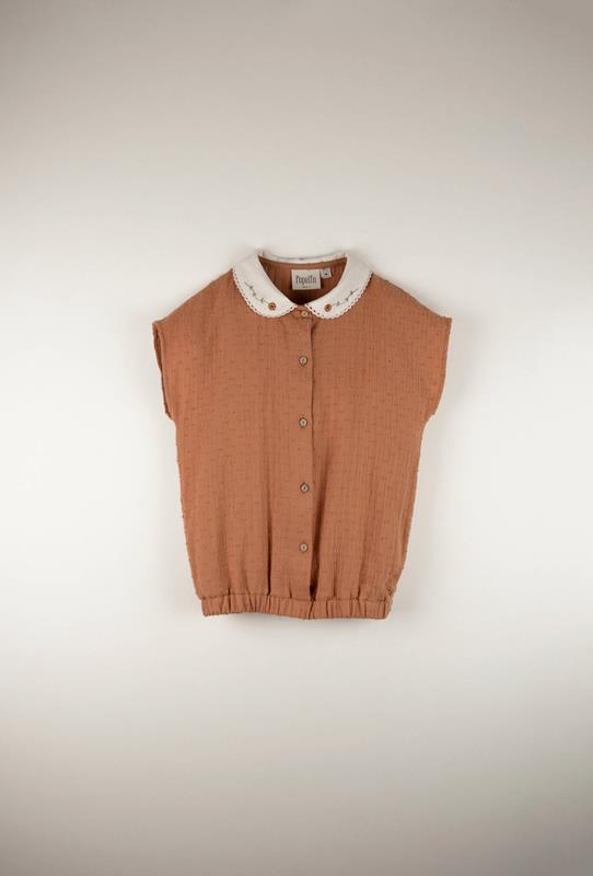 1 Ref. SS22 Mod.17.1 Terracotta organic blouse with embroidered collar Ver otros productos del mismo autor