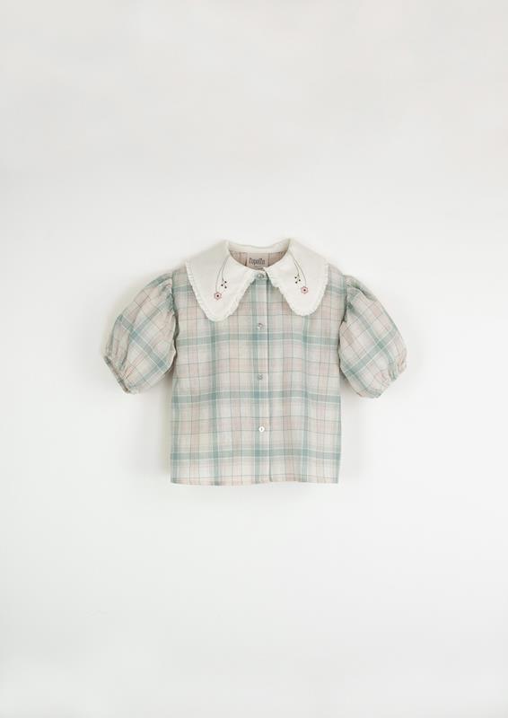 Ref. SS23 Mod.21.4 Pink plaid organic blouse with embroidered collar