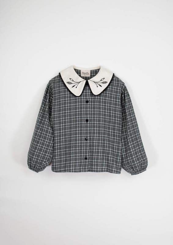 Ref. AW24.25 Mod.15.3 Drak grey plaid blouse with embroidered maxi collar
