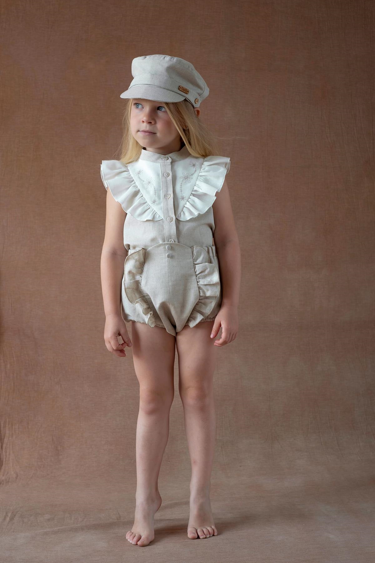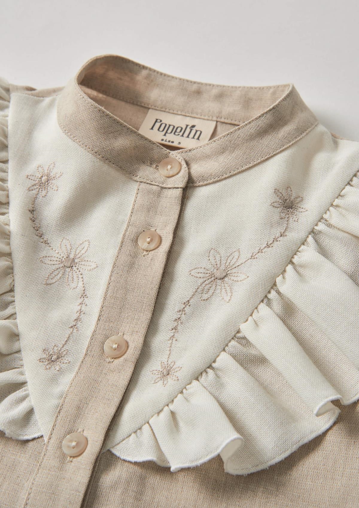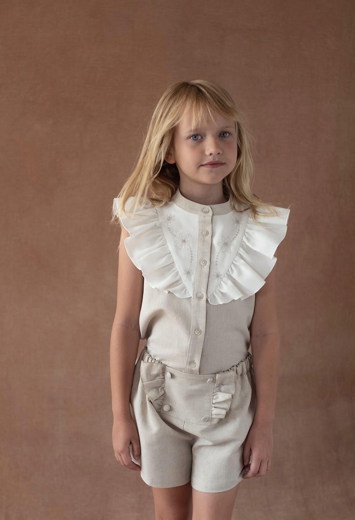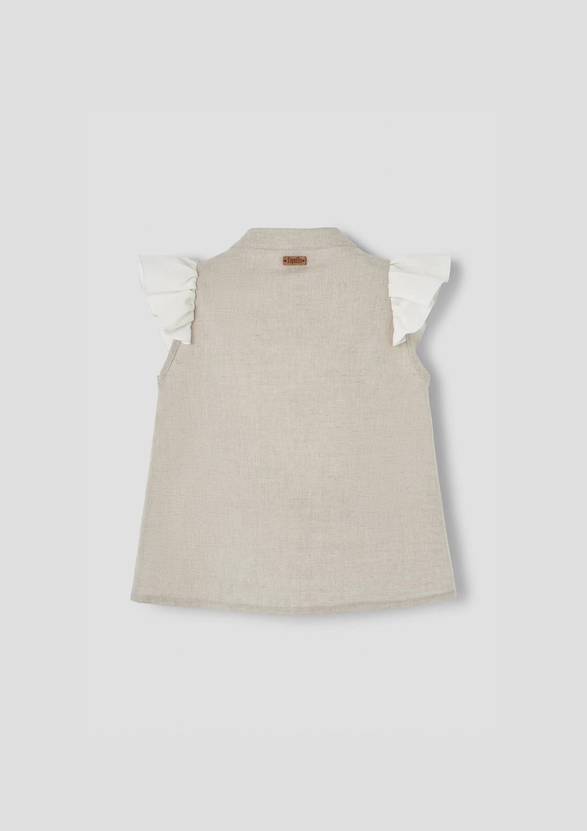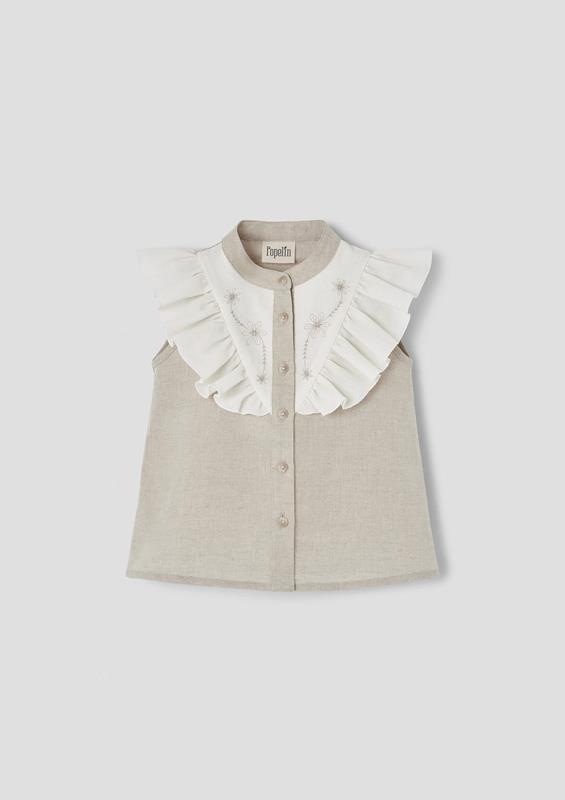 Ref. SS26 Mod.14.1 Sand linen blouse with frill and embroidered yoke