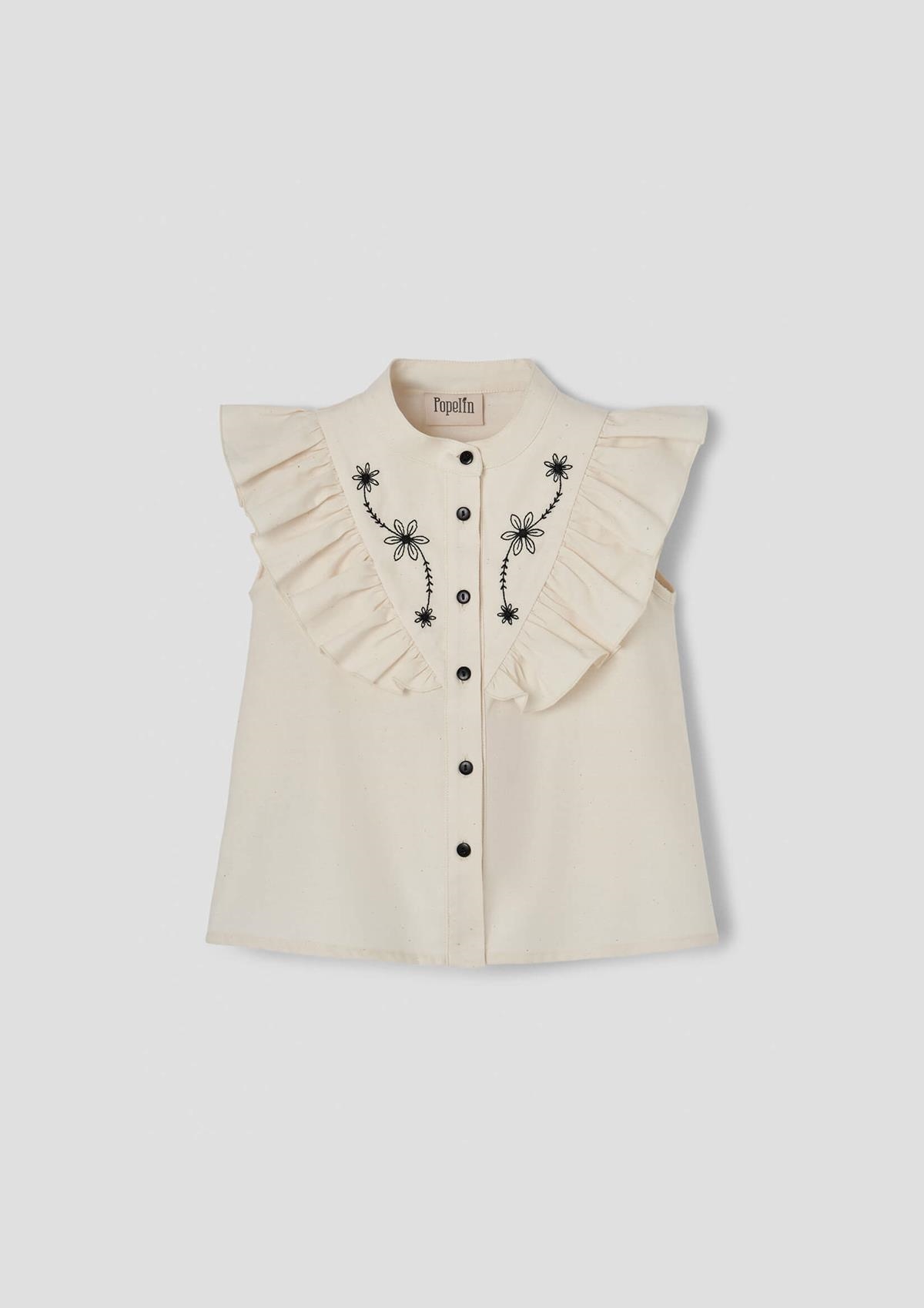 Ref. SS26 Mod.14.3 Blouse with frill and black embroidered yoke