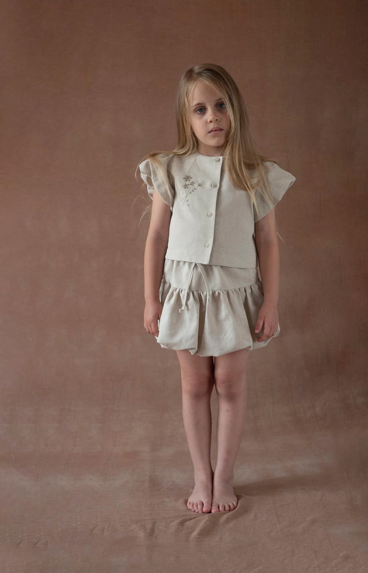 • Mod.15.3 Sand linen embroidered blouse with puffed sleeves