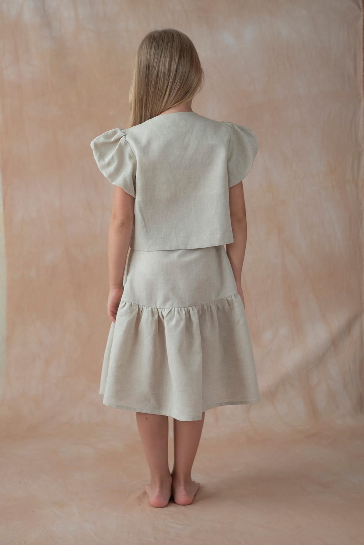 Ref. SS26 Mod.15.3 Sand linen embroidered blouse with puffed sleeves