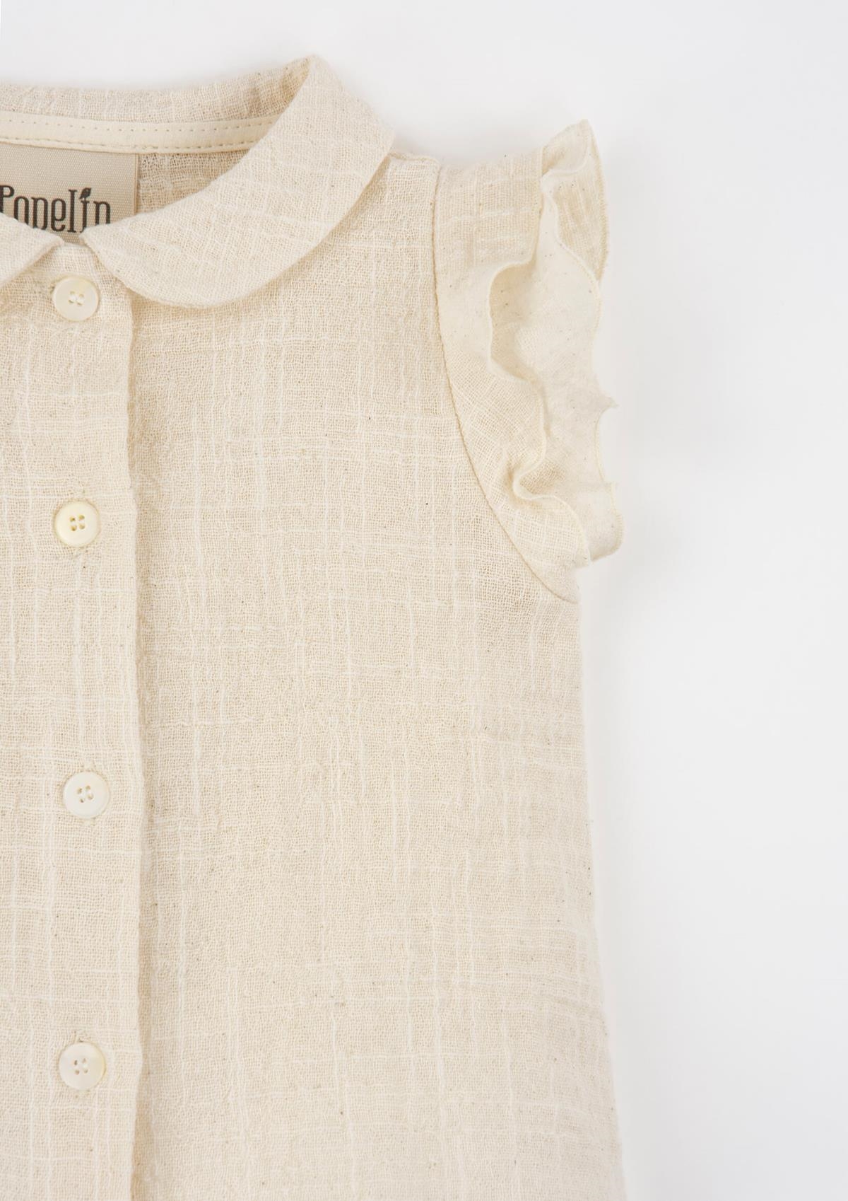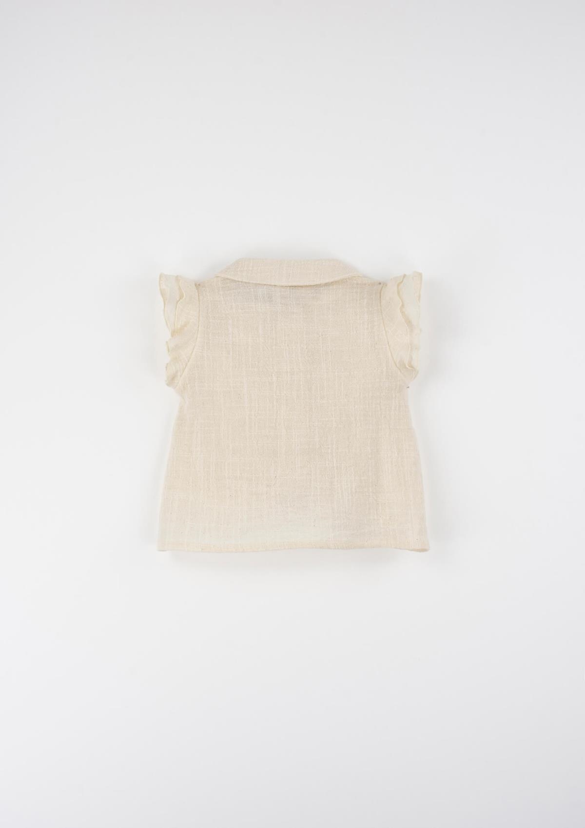 Blouse with double frill cutaway sleeves and baby collar. Buttoned opening on the front.