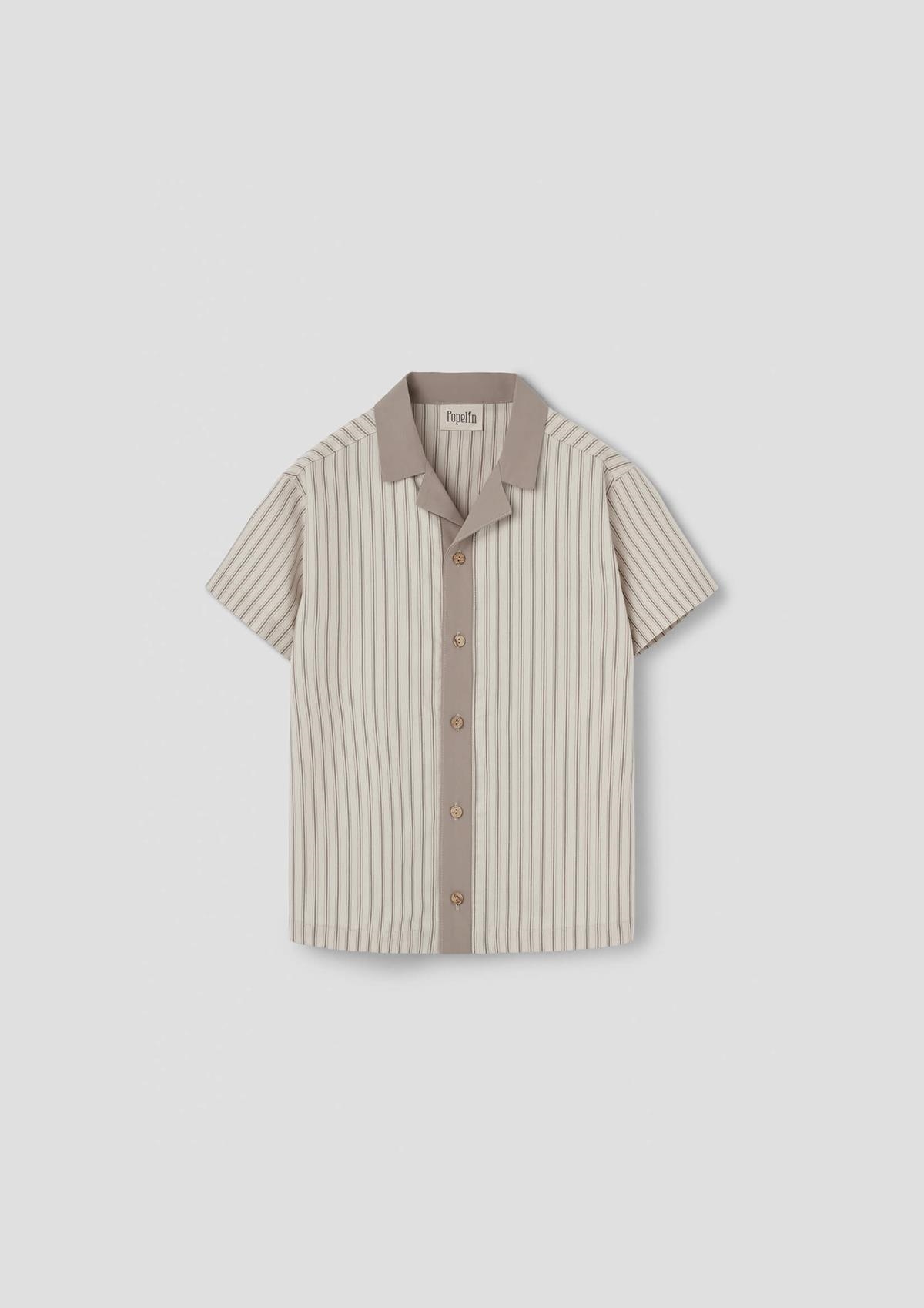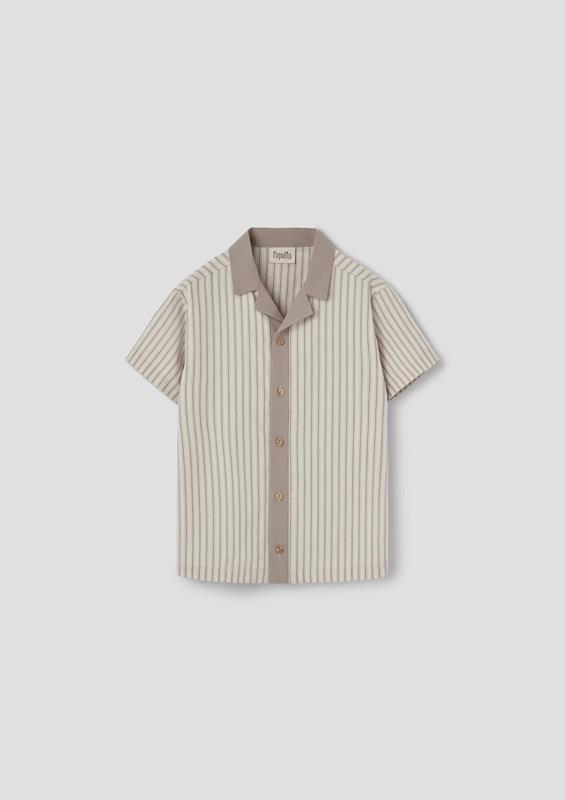 Ref. SS26 Mod.21.2 Brown striped shirt with lapel collar